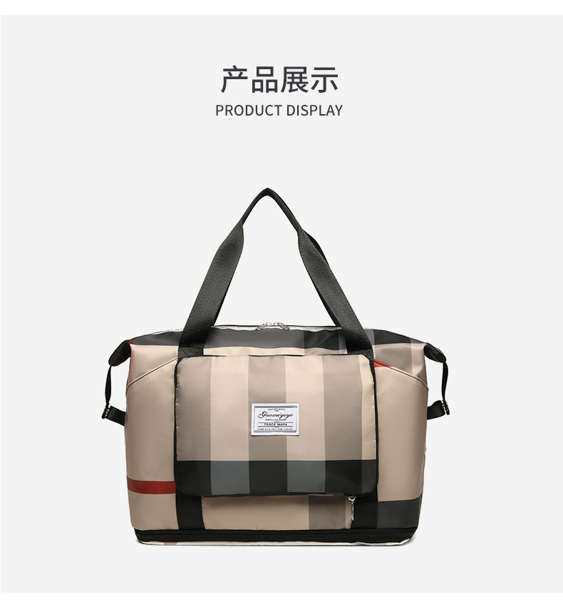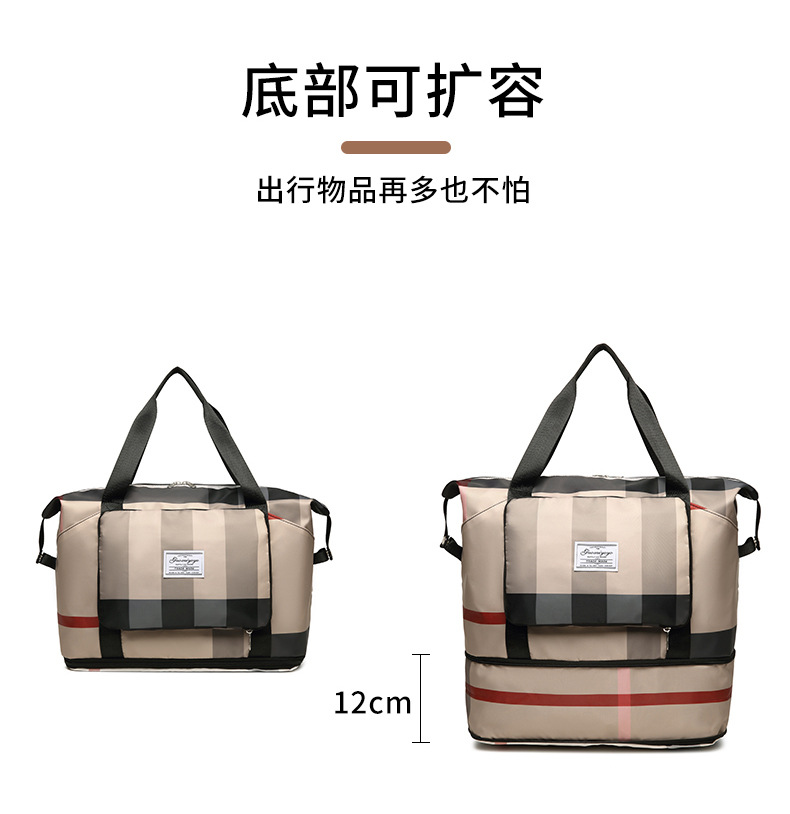 새로운 격자 무늬 대용량 여성 휴대용 여행 가방 피트니스 비즈니스 여행 수하물 가방 착용 트롤리 가방 경량 보관 가방