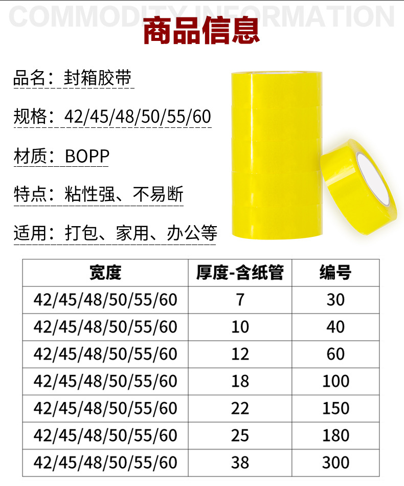 • 투명한 노란색; 4.3cm * 130 길이와 2.2 두께 [전체 상자 48 권]]