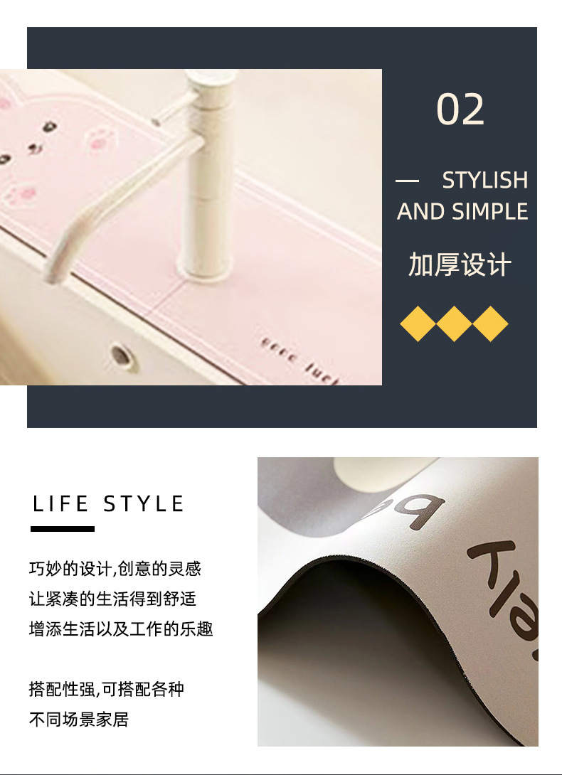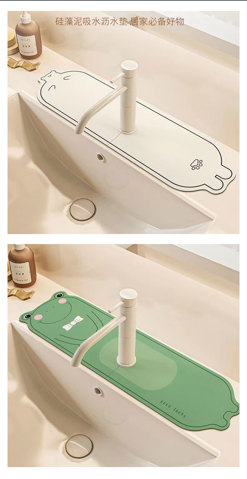 만화 귀여운 규조류 진흙 세면대 얼굴 매트 욕실 수도꼭지 흡수성 매트 튀김 방지 세면대 배수 매트