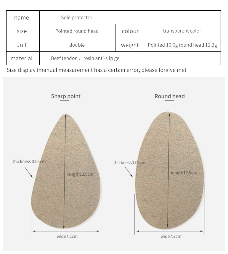 단독 미끄럼 방지 스티커 쇠고기 힘줄 하이힐 신발 가죽 밑창 신발 1-3 미터 보호 필름 컷프리 앞발 마모 방지 패치 M