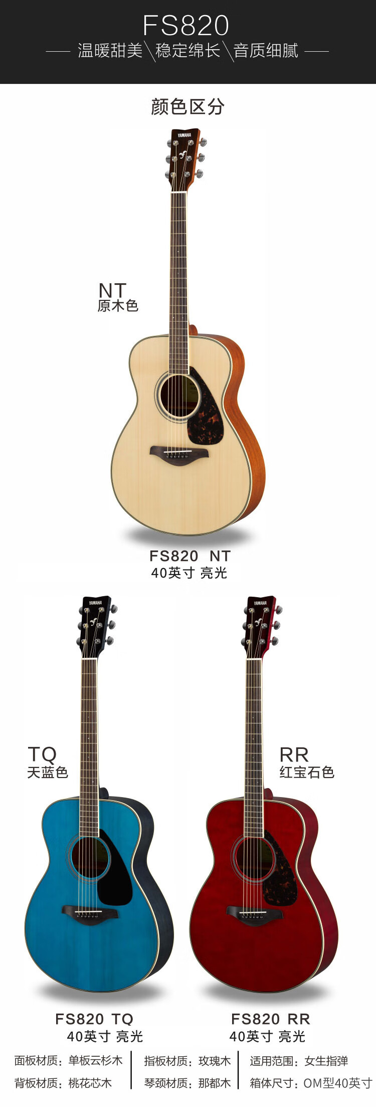 YAMAHA FG820BS 베니어 포크 기타 지타 복숭아 코어 후면 플레이트 다크 브라운