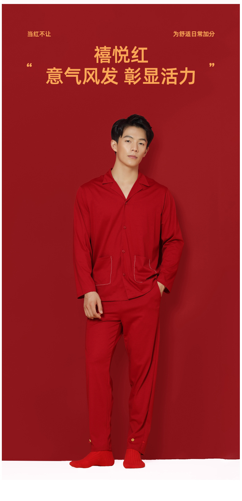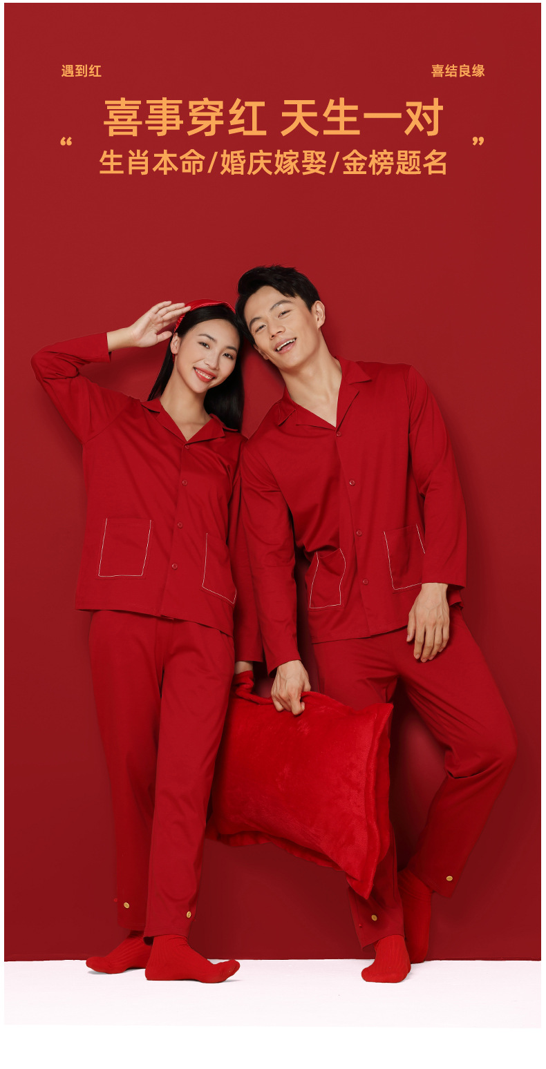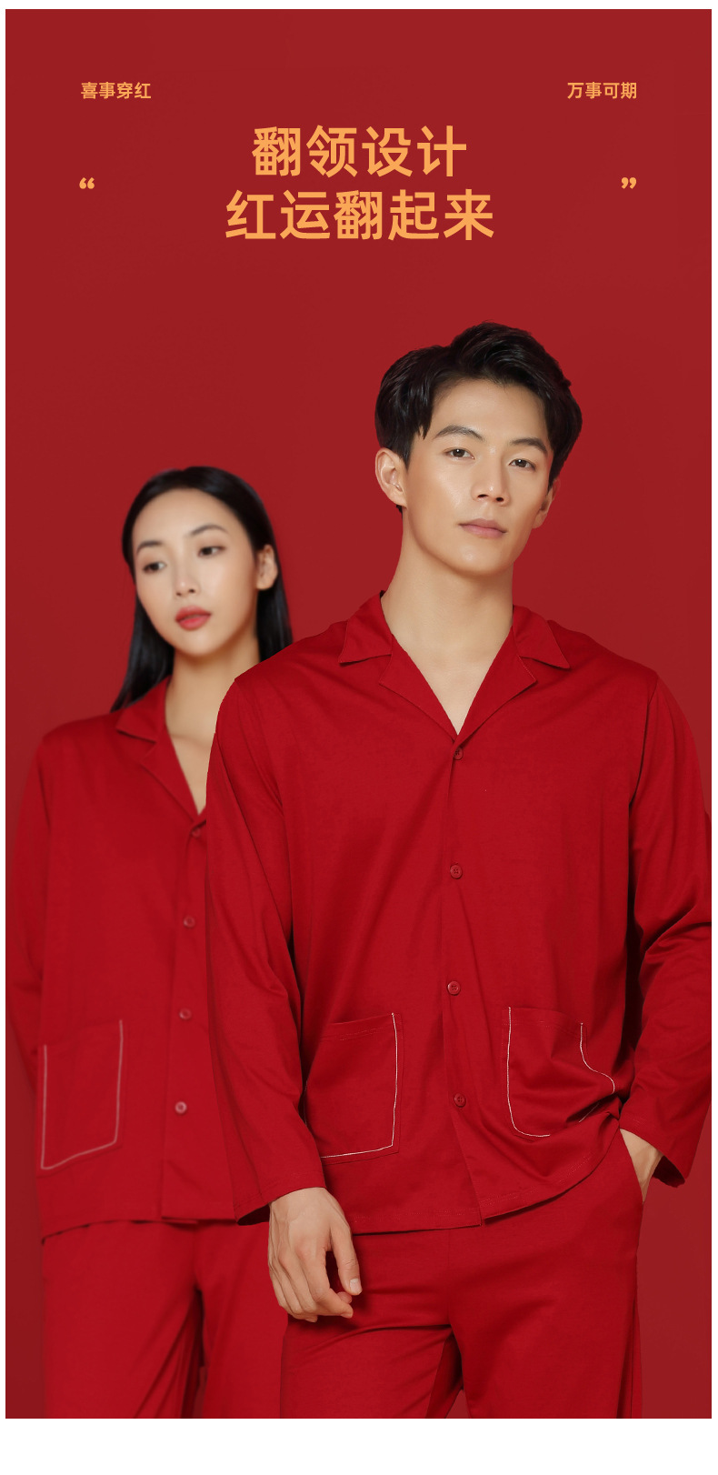 신상품 크로스보더 주름방지 실크광택 면 가을 겨울 커플 가디건 잠옷, 생년월일 맞춤형 신혼 빨간색 홈웨어 재고 있음
