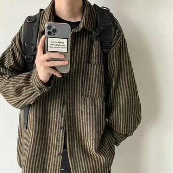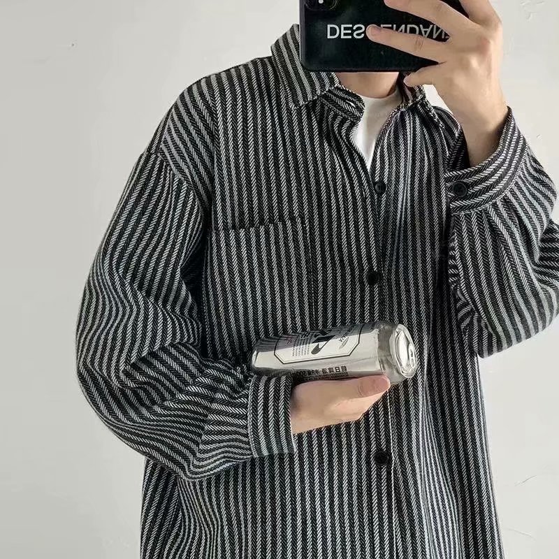 Cityboy 일본식 2023 스트라이프 셔츠 남자의 긴 소매 복고풍 틈새 디자인 감각 유행 캐주얼 셔츠 재킷