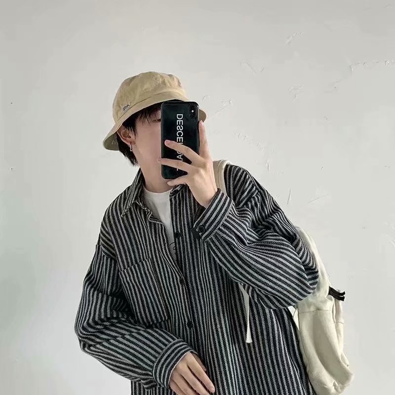 Cityboy 일본식 2023 스트라이프 셔츠 남자의 긴 소매 복고풍 틈새 디자인 감각 유행 캐주얼 셔츠 재킷스토어 가기
