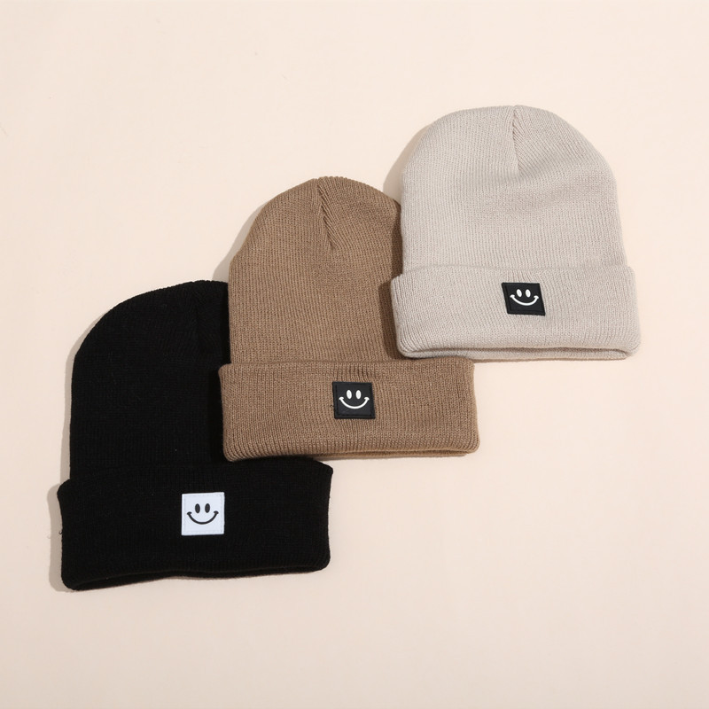 INS 뜨거운 판매 어린이 가을과 겨울 니트 모자 귀여운 소년과 소녀 아기 스마일 니트 모자 따뜻한 귀 보호 니트 모자스토어 가기