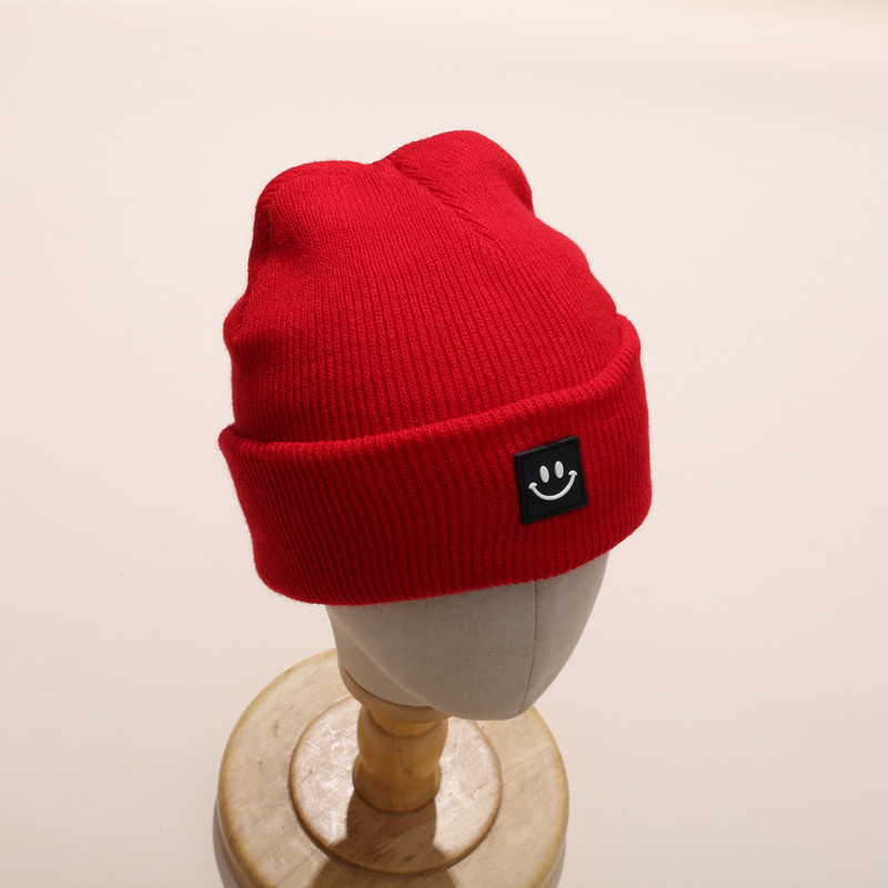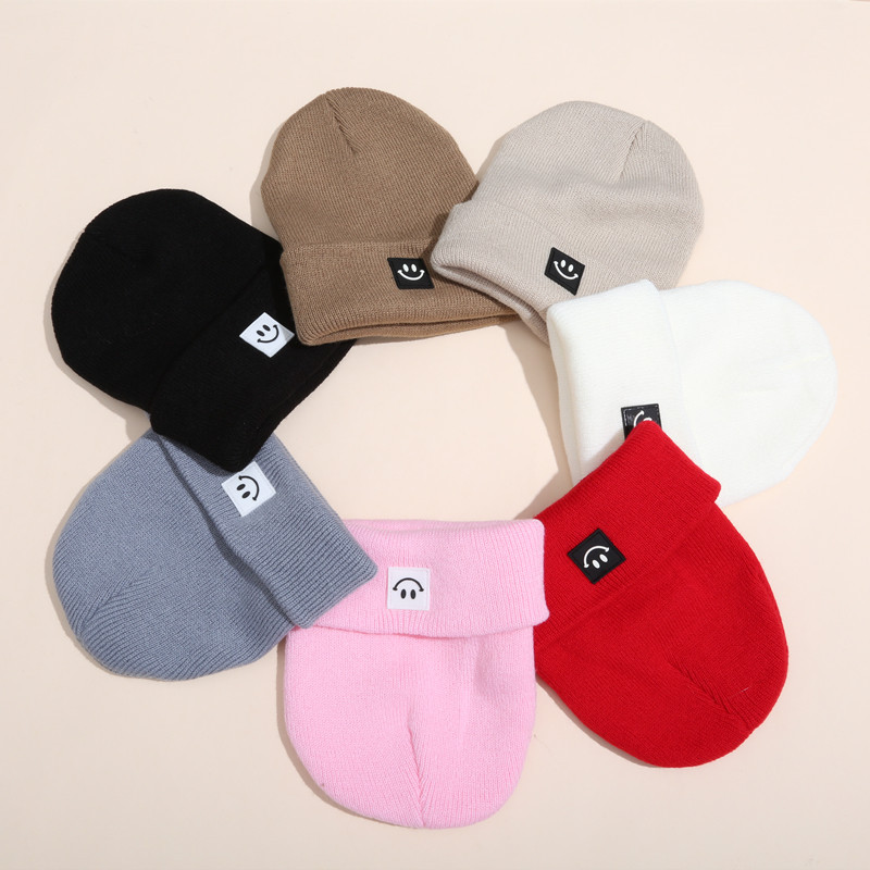 INS 뜨거운 판매 어린이 가을과 겨울 니트 모자 귀여운 소년과 소녀 아기 스마일 니트 모자 따뜻한 귀 보호 니트 모자