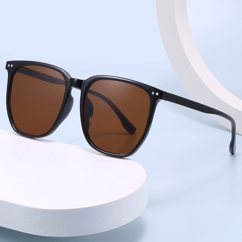2023 신형 선글라스 여성용 블랙 프레임 티 렌즈 무지 차양 선글라스 자외선 차단 타이드 스트리트 촬영 남성