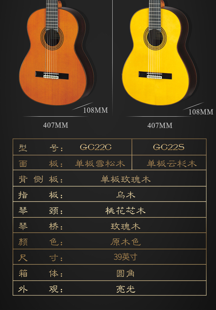 YAMAHA GC22C 풀 베니어 전문 초급 클래식 기타 삼나무 패널 연주스토어 가기