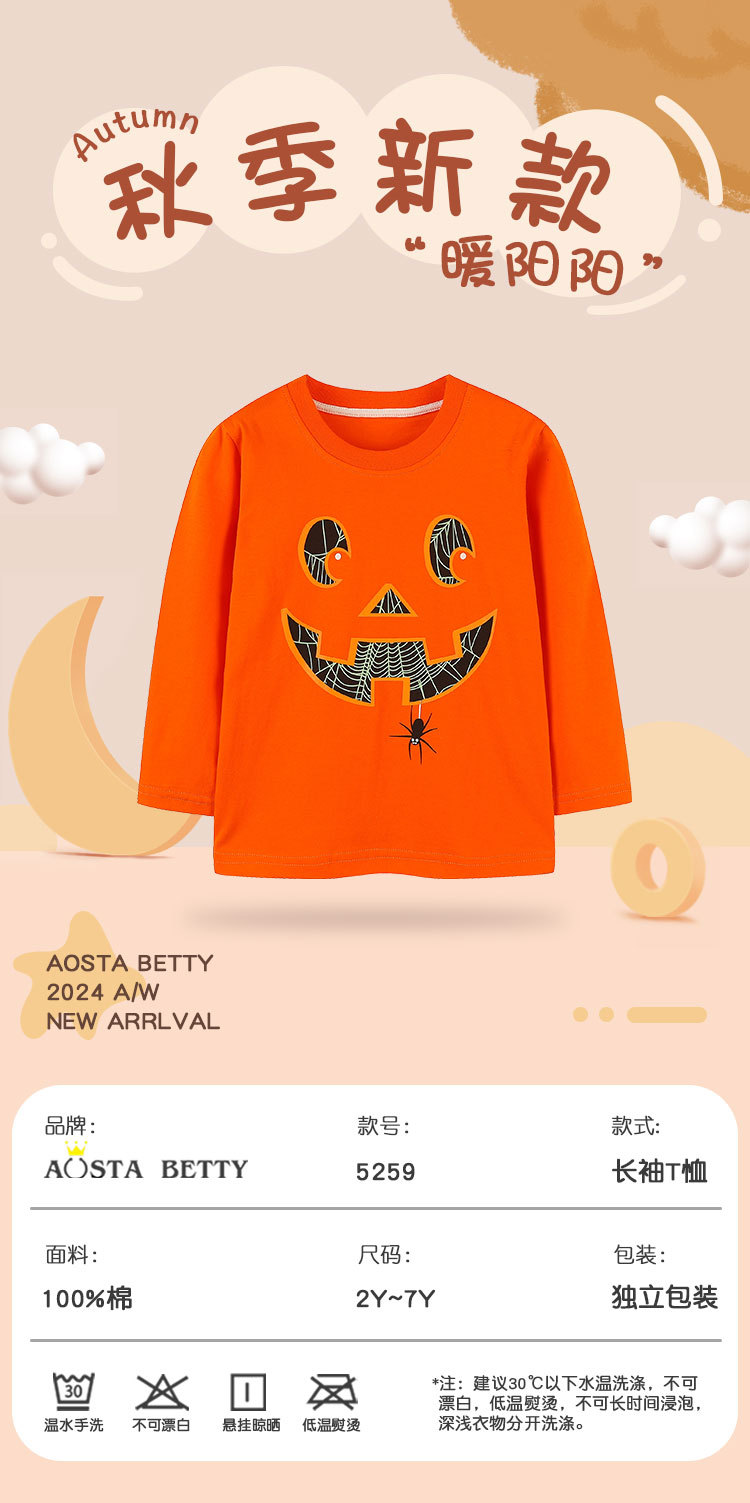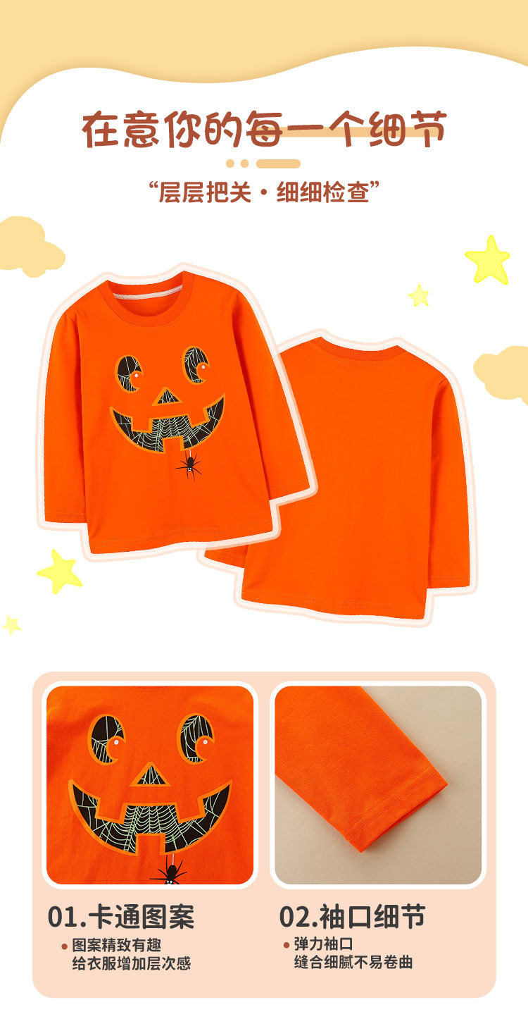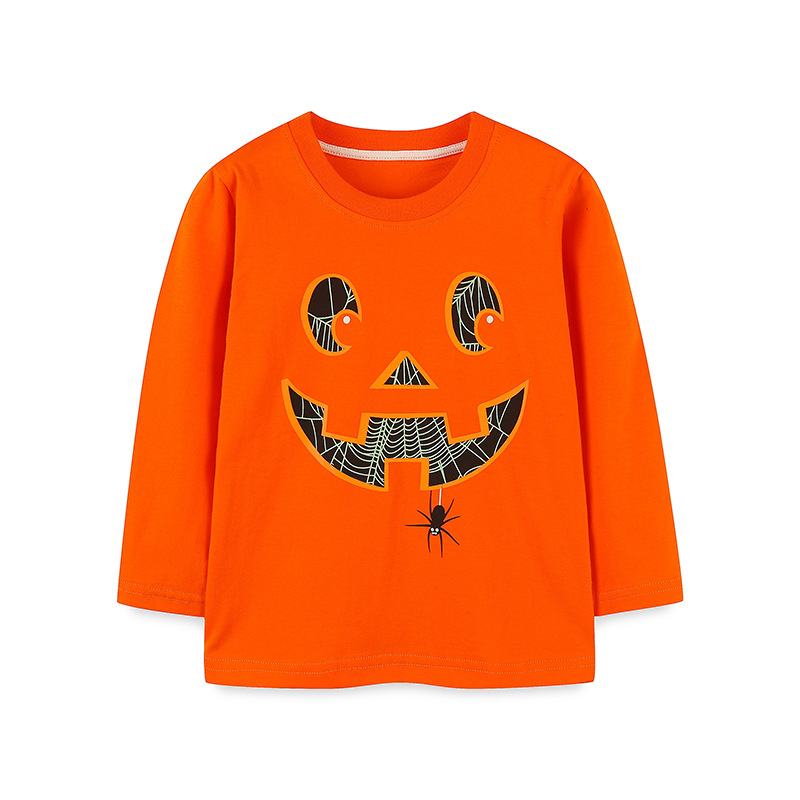 유럽과 미국 스타일의 어린이 긴팔 티셔츠 가을 새로운 어린이 할로윈 형광 호박 프린트 탑 혼합 배치스토어 가기