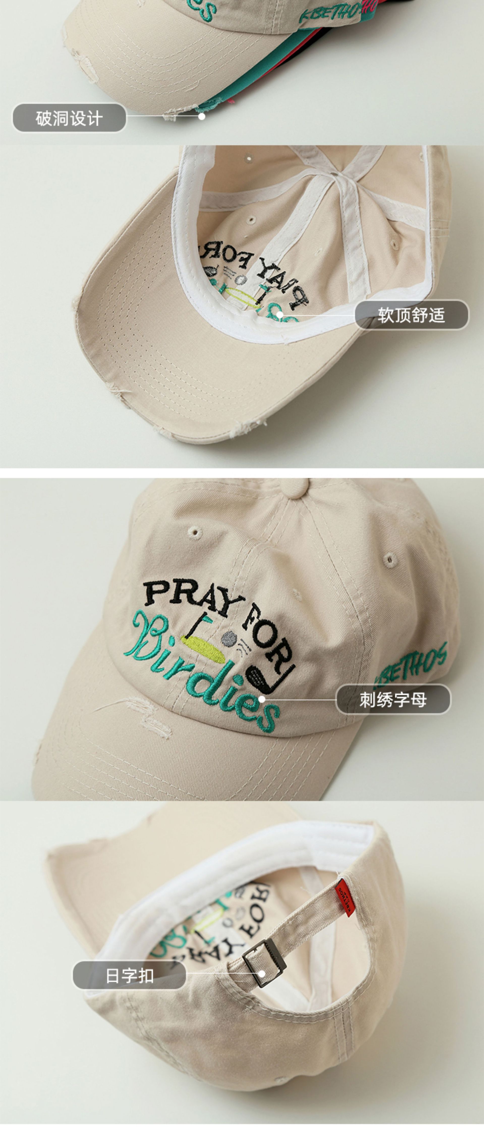 모자 아메리칸 빈티지 찢어진 자수 편지 모자 여성용 큰 머리 넓은 챙 소프트 탑 야구 모자 작은 얼굴을 보여줍니다스토어 가기