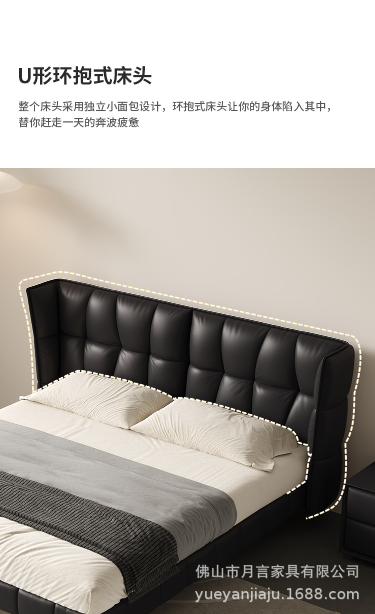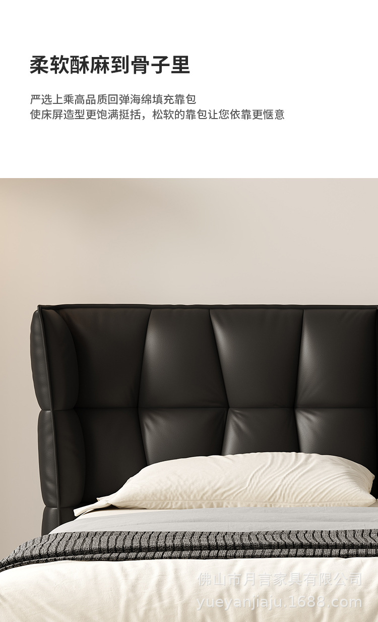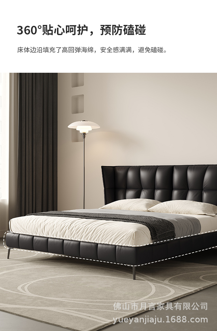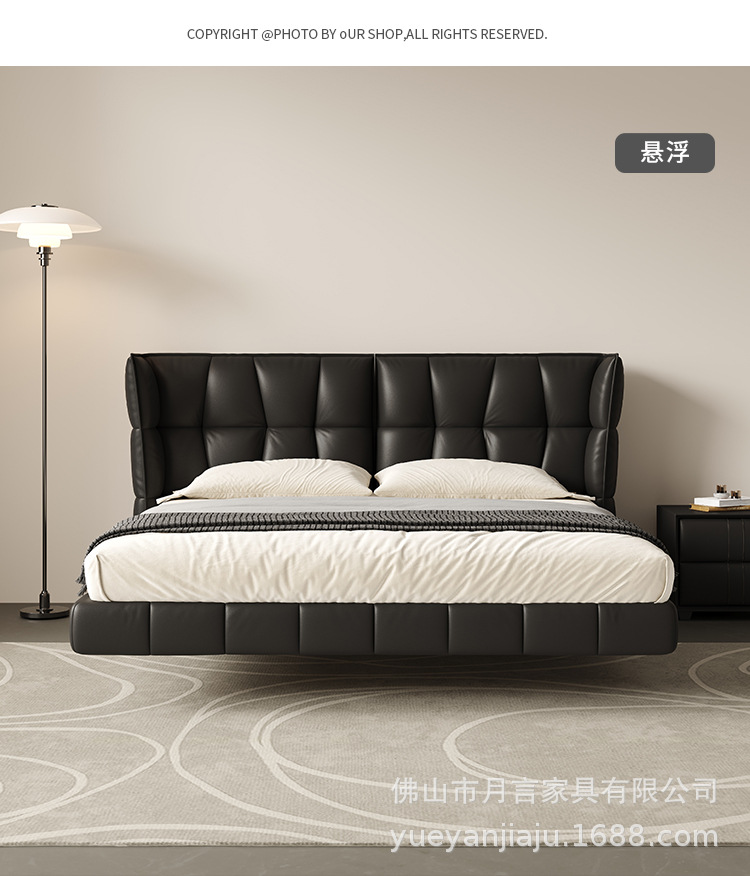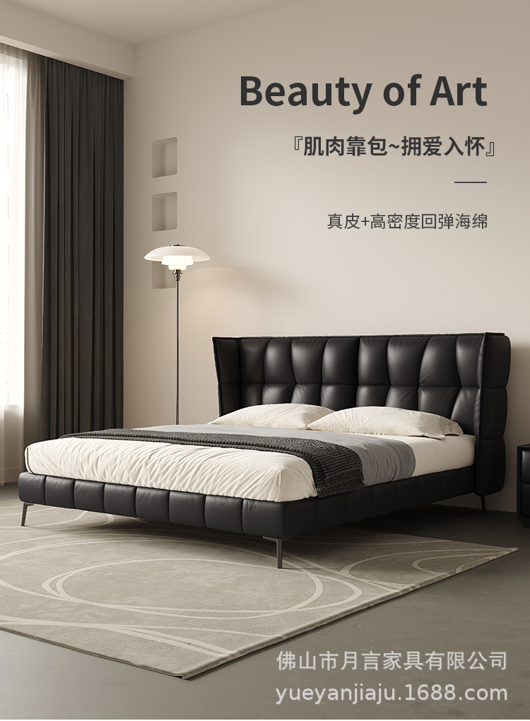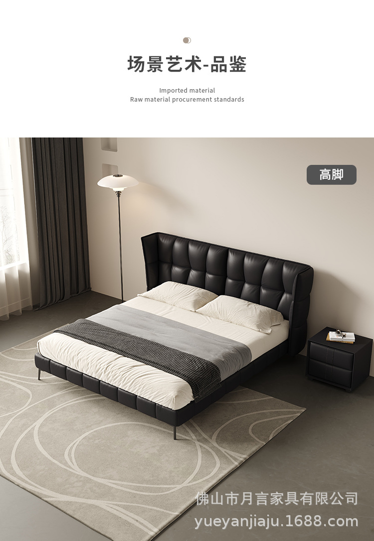 인터넷 유명인의 이탈리아식 미니멀리스트 스타일의 블랙 가죽 침대, 근육질 침대, 소형 아파트용 모던 심플 더블 서스펜션 가죽 침대스토어 가기