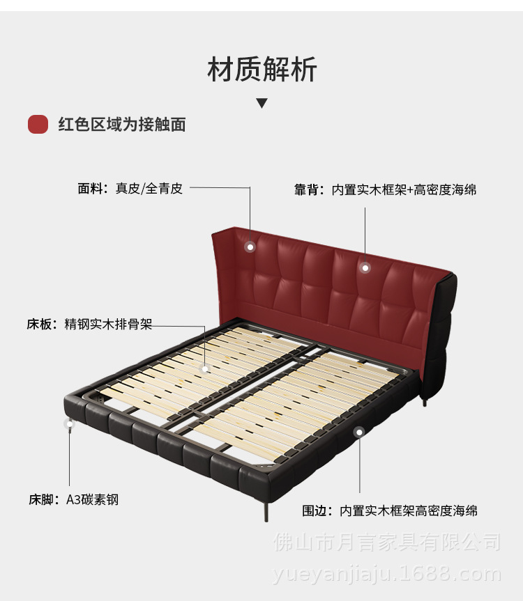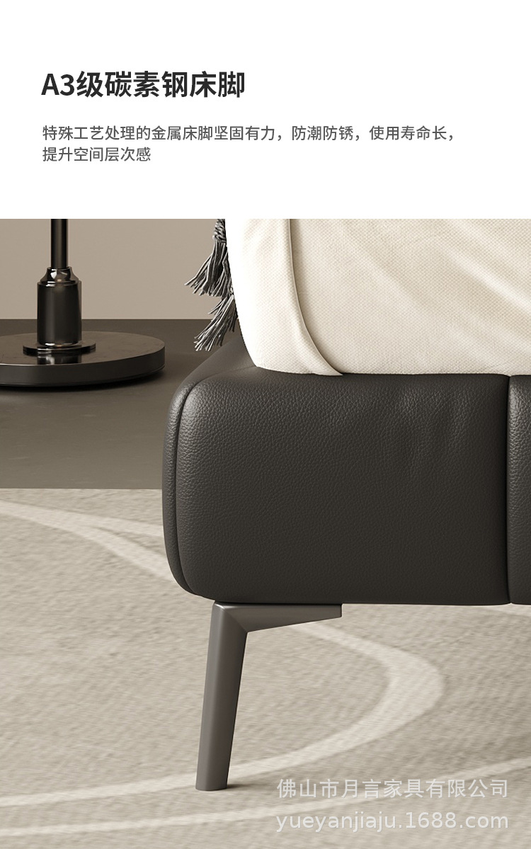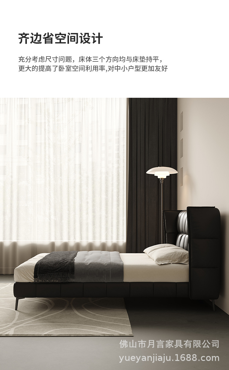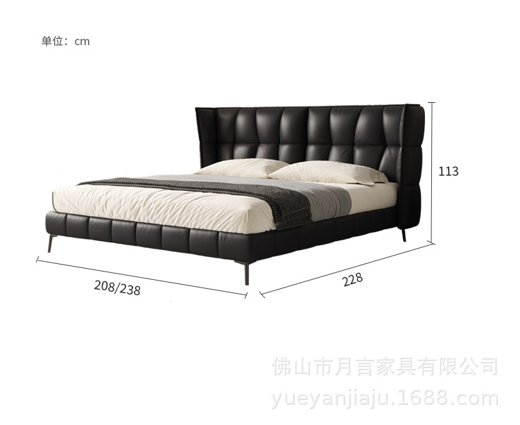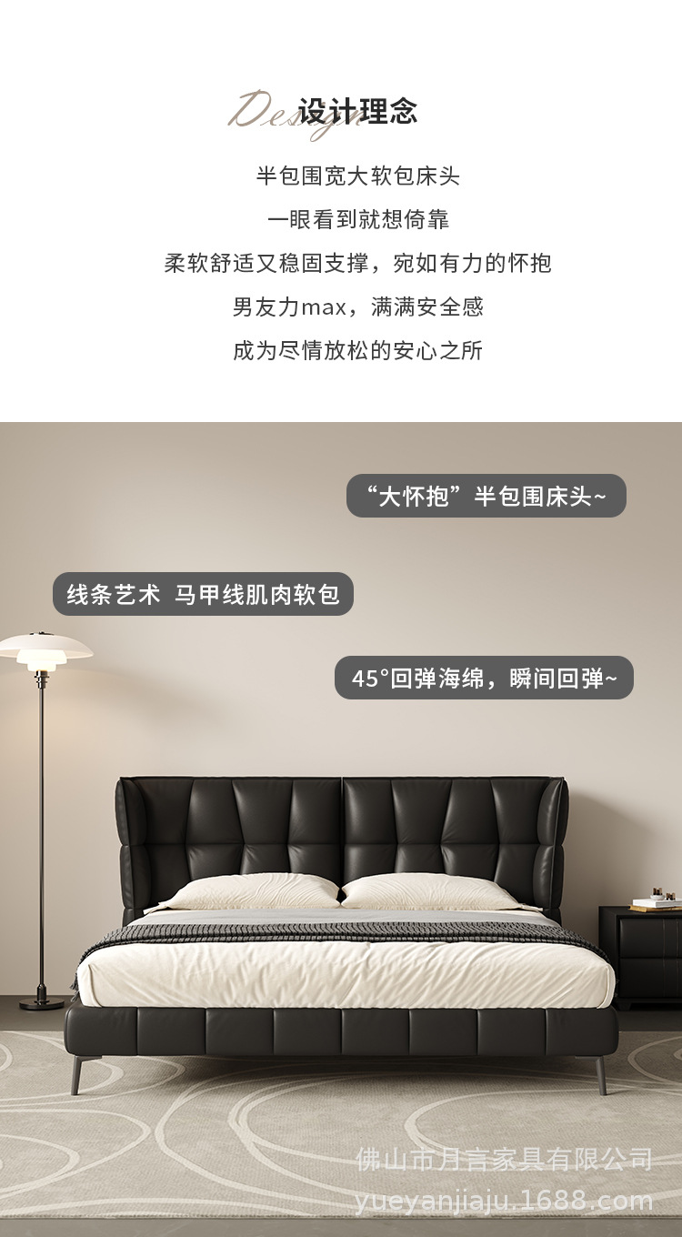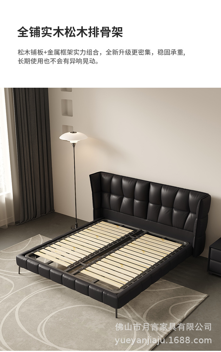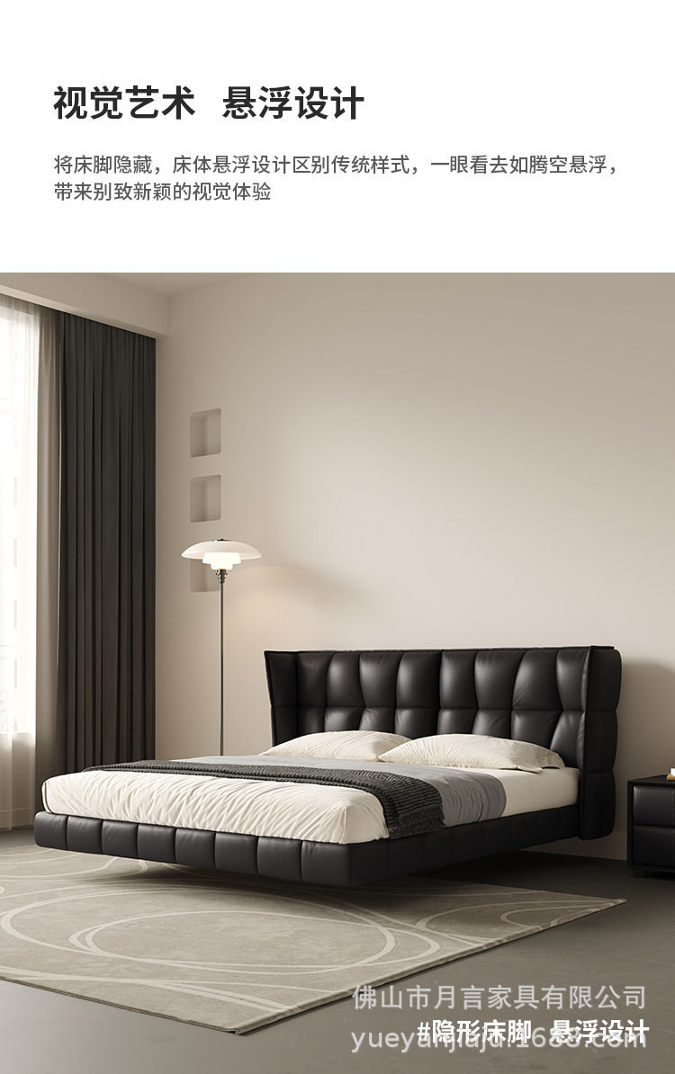 인터넷 유명인의 이탈리아식 미니멀리스트 스타일의 블랙 가죽 침대, 근육질 침대, 소형 아파트용 모던 심플 더블 서스펜션 가죽 침대스토어 가기