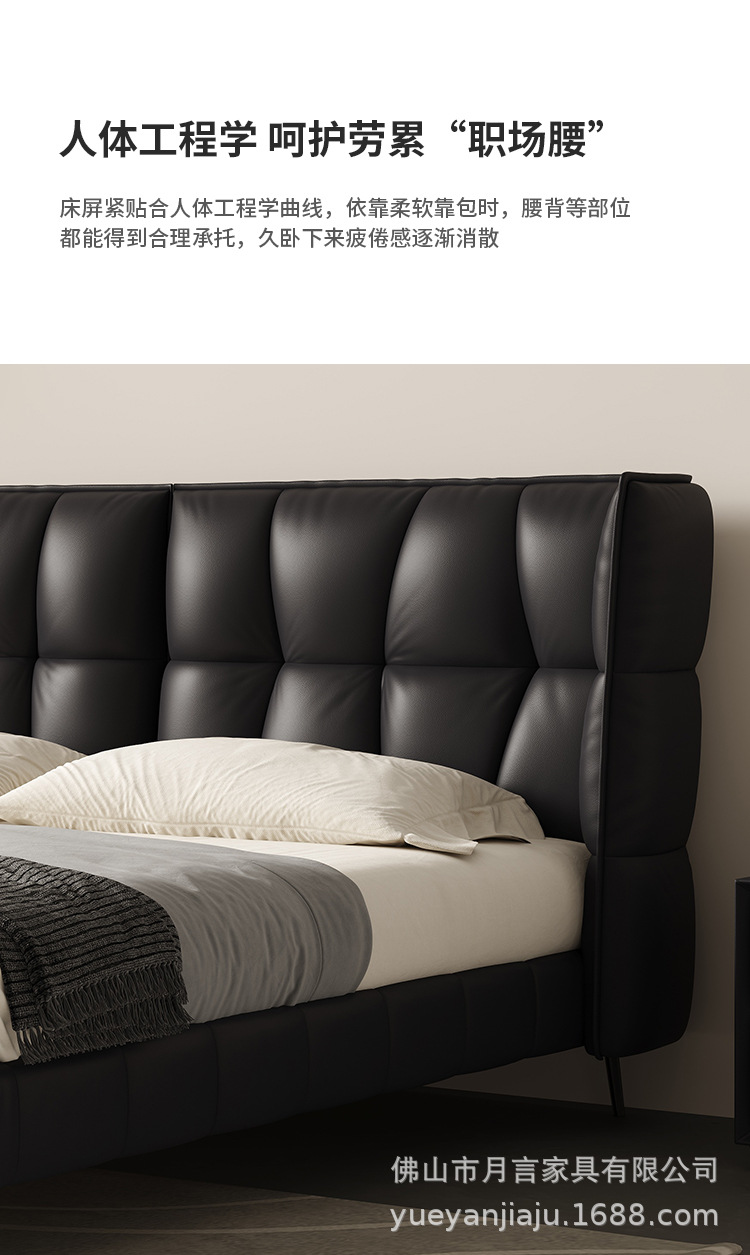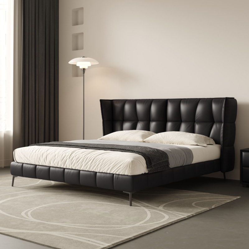 인터넷 유명인의 이탈리아식 미니멀리스트 스타일의 블랙 가죽 침대, 근육질 침대, 소형 아파트용 모던 심플 더블 서스펜션 가죽 침대