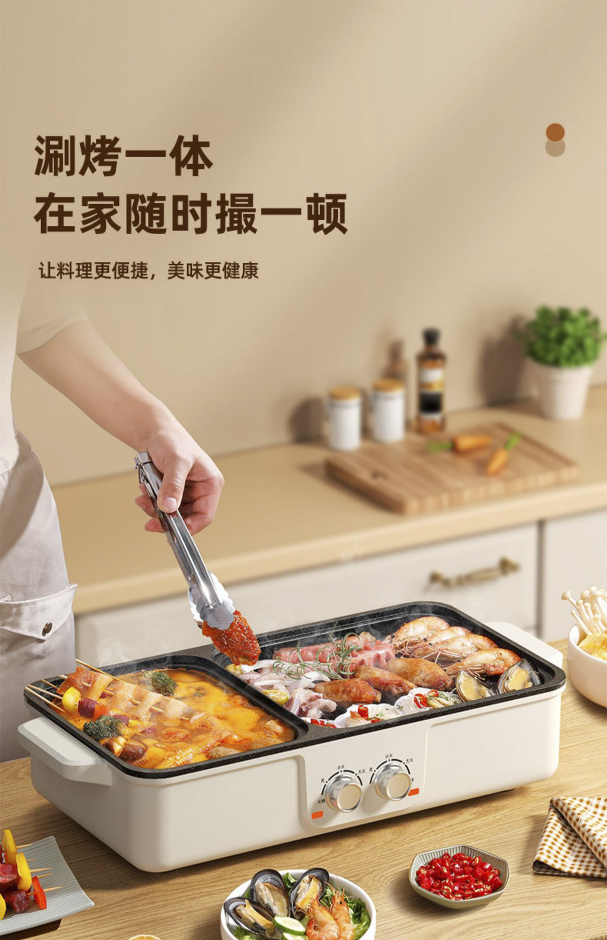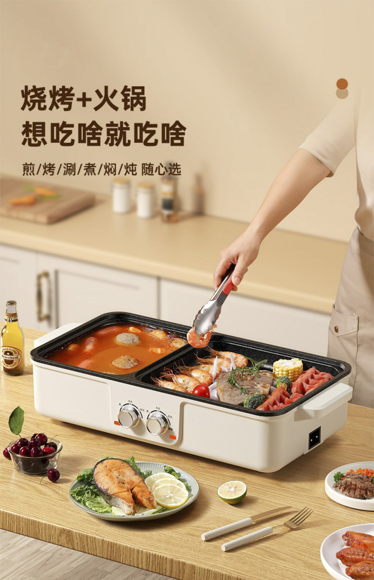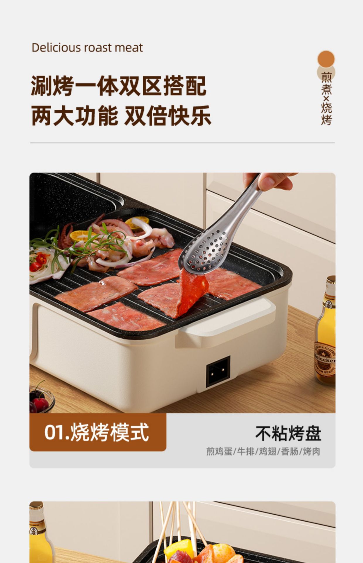 가정용 샤브샤브 올인원 냄비 바베큐 붙지 않는 다기능 전기 바베큐 접시 냄비 샤브샤브 구이 이중 목적 올인원 냄비 전기 요리 냄비스토어 가기