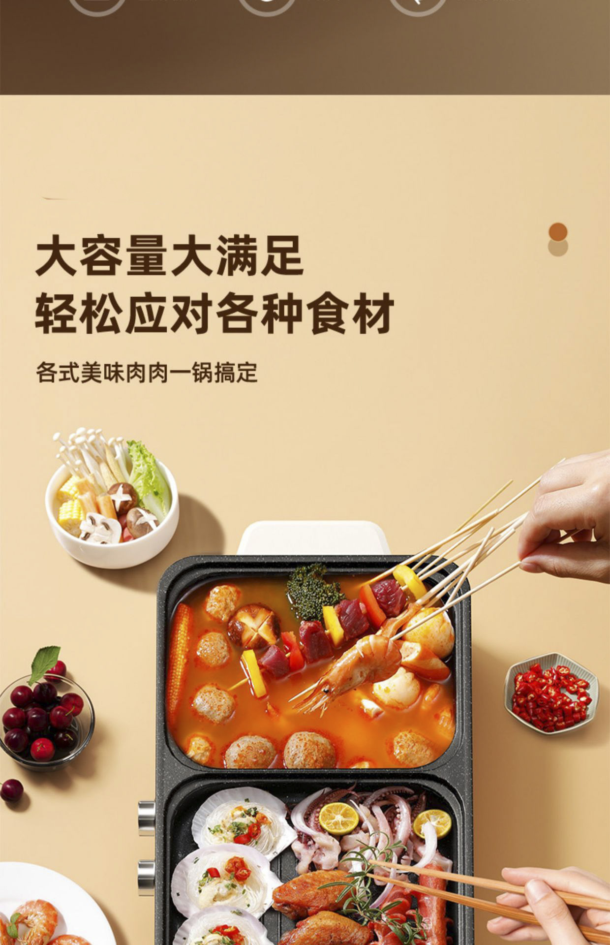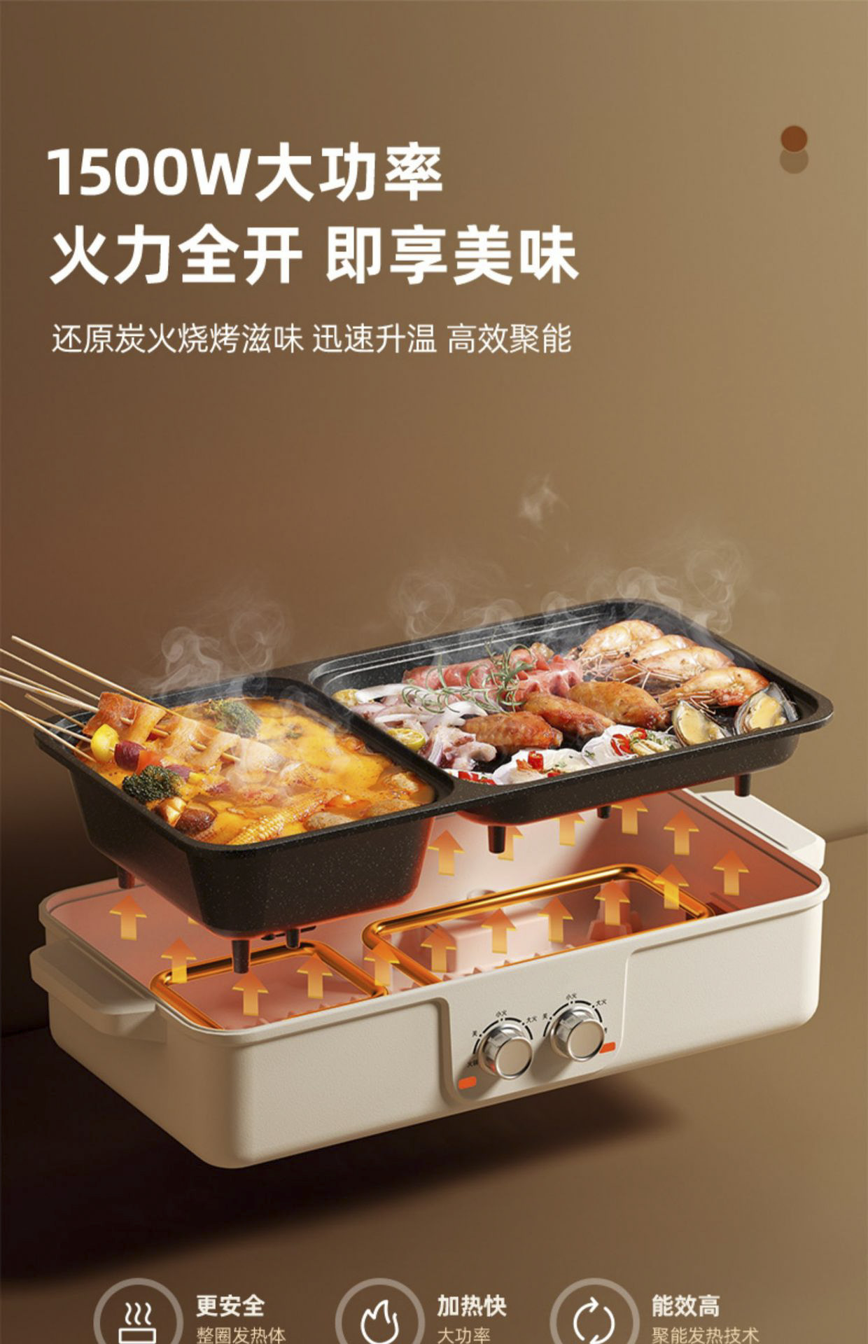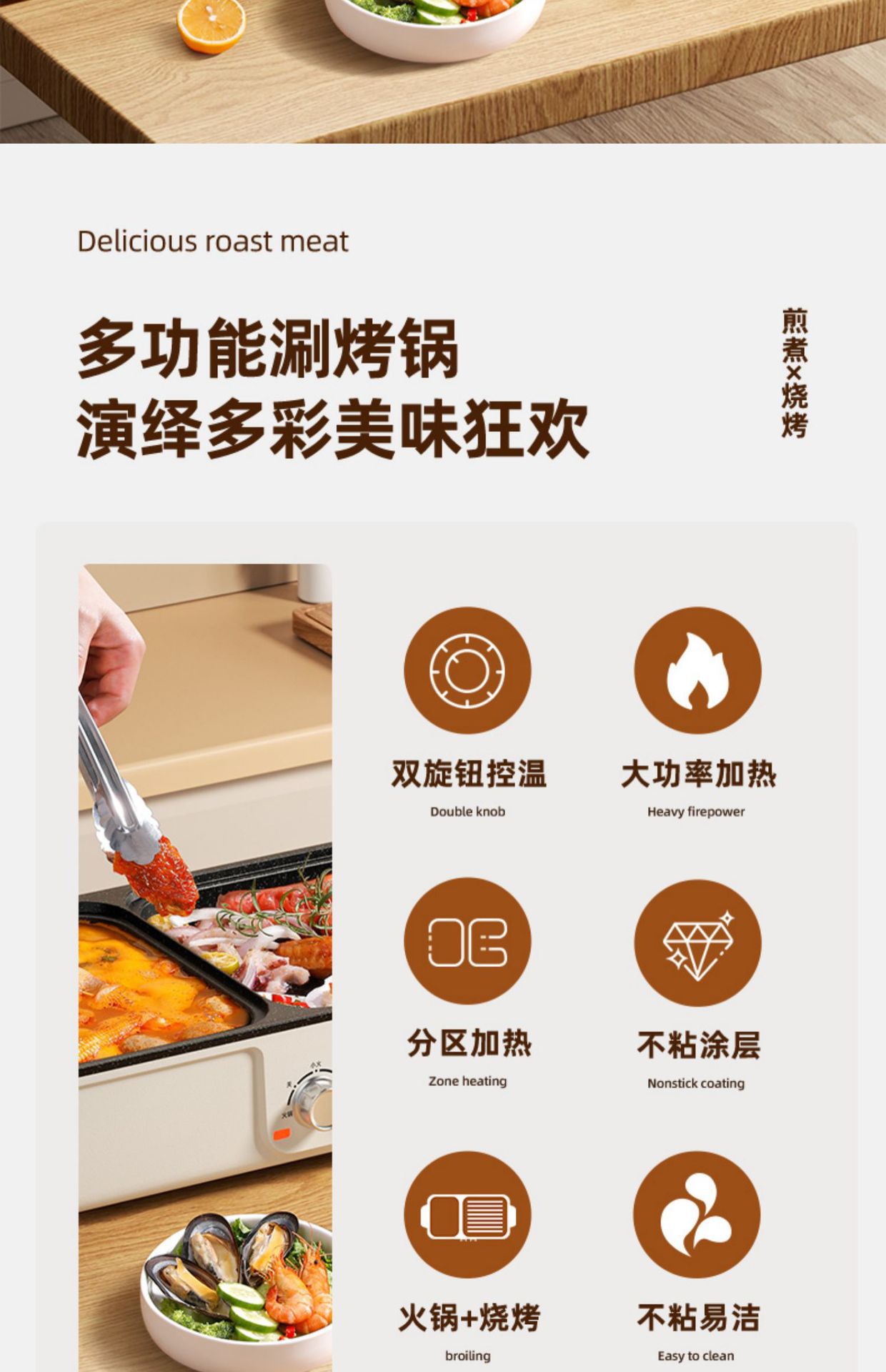 가정용 샤브샤브 올인원 냄비 바베큐 붙지 않는 다기능 전기 바베큐 접시 냄비 샤브샤브 구이 이중 목적 올인원 냄비 전기 요리 냄비스토어 가기