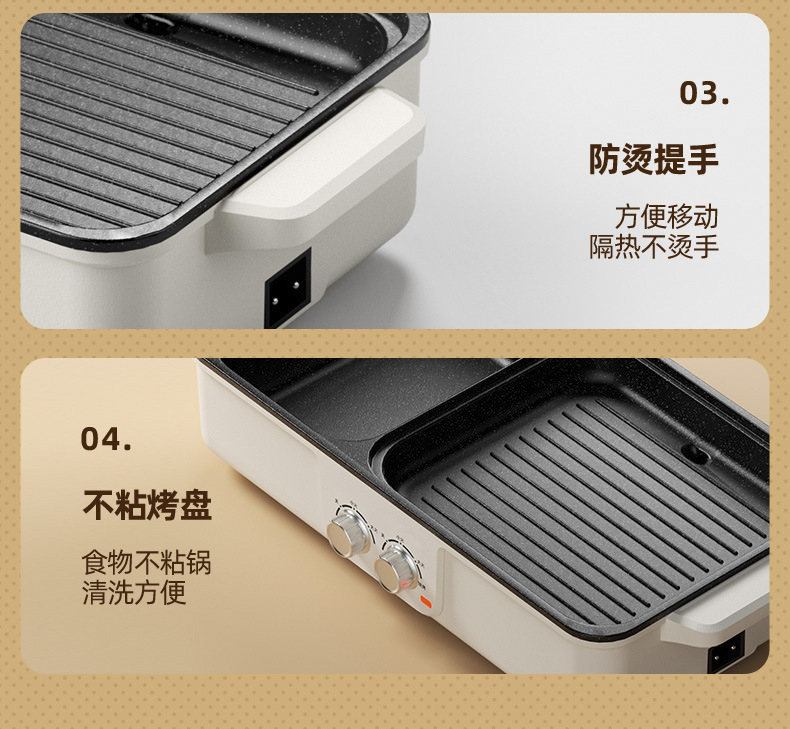 가정용 샤브샤브 올인원 냄비 바베큐 붙지 않는 다기능 전기 바베큐 접시 냄비 샤브샤브 구이 이중 목적 올인원 냄비 전기 요리 냄비
