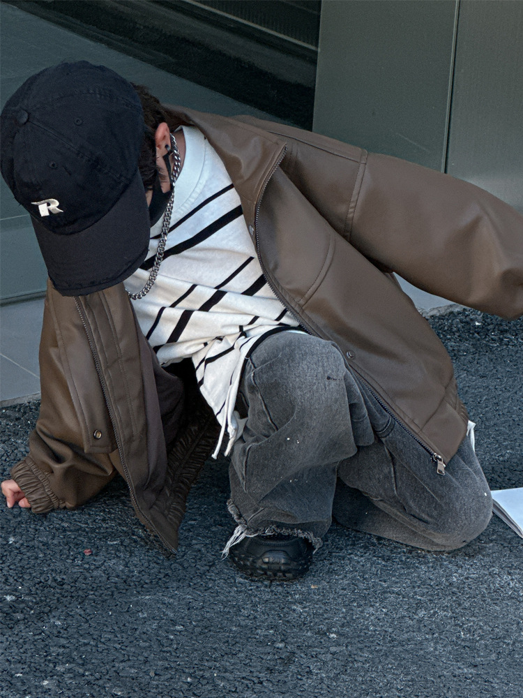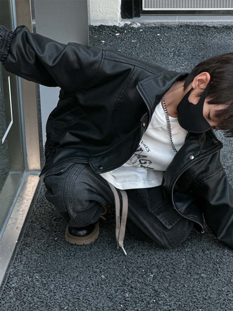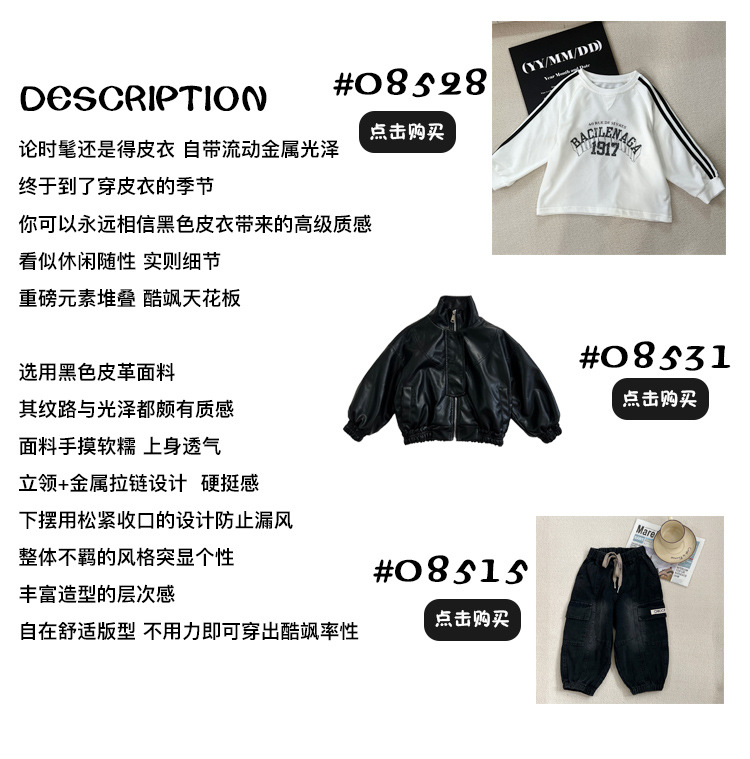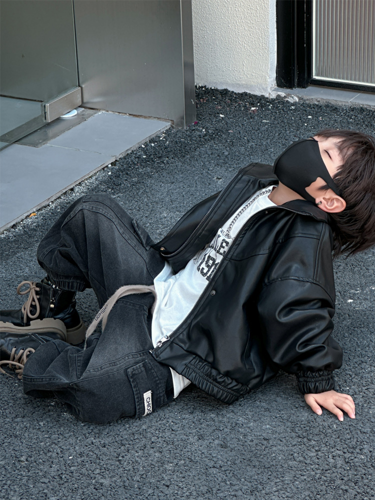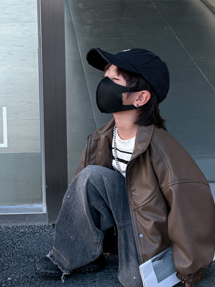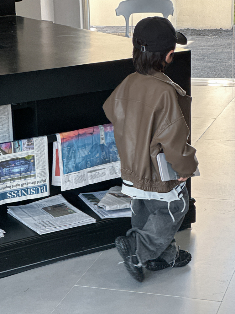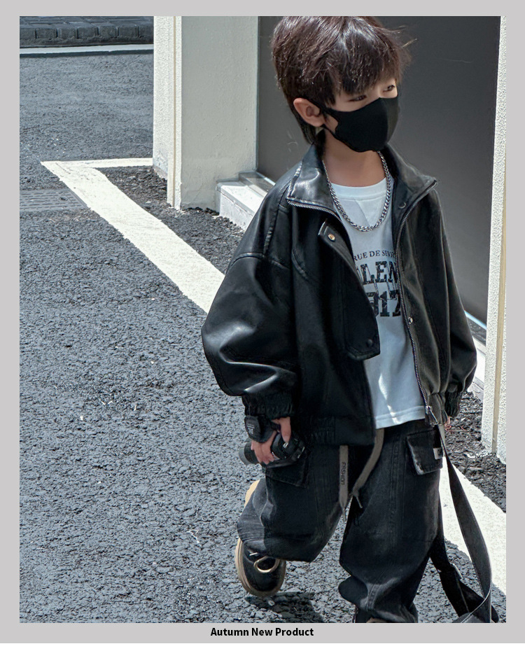 면 소재 가죽 자켓 가을옷 한국 스타일 아동복 2025 가을 신상품 남아용 짧은 앞면 여밈 가죽 자켓스토어 가기