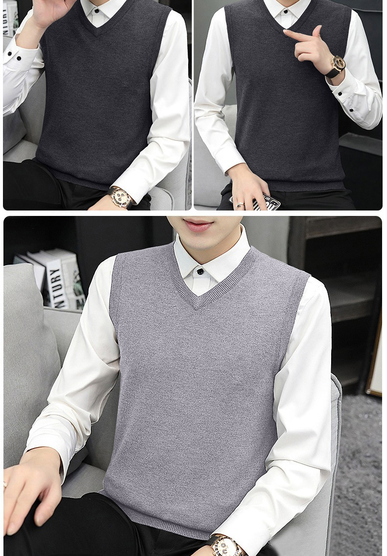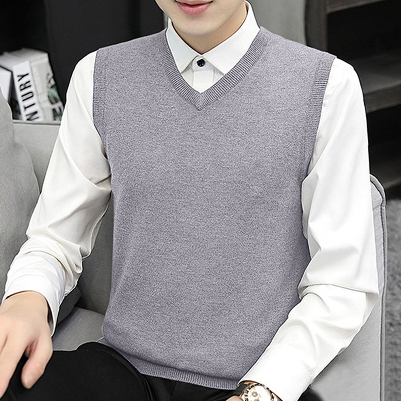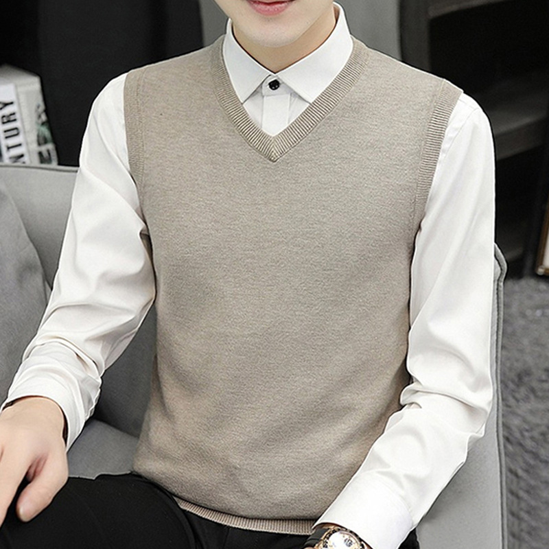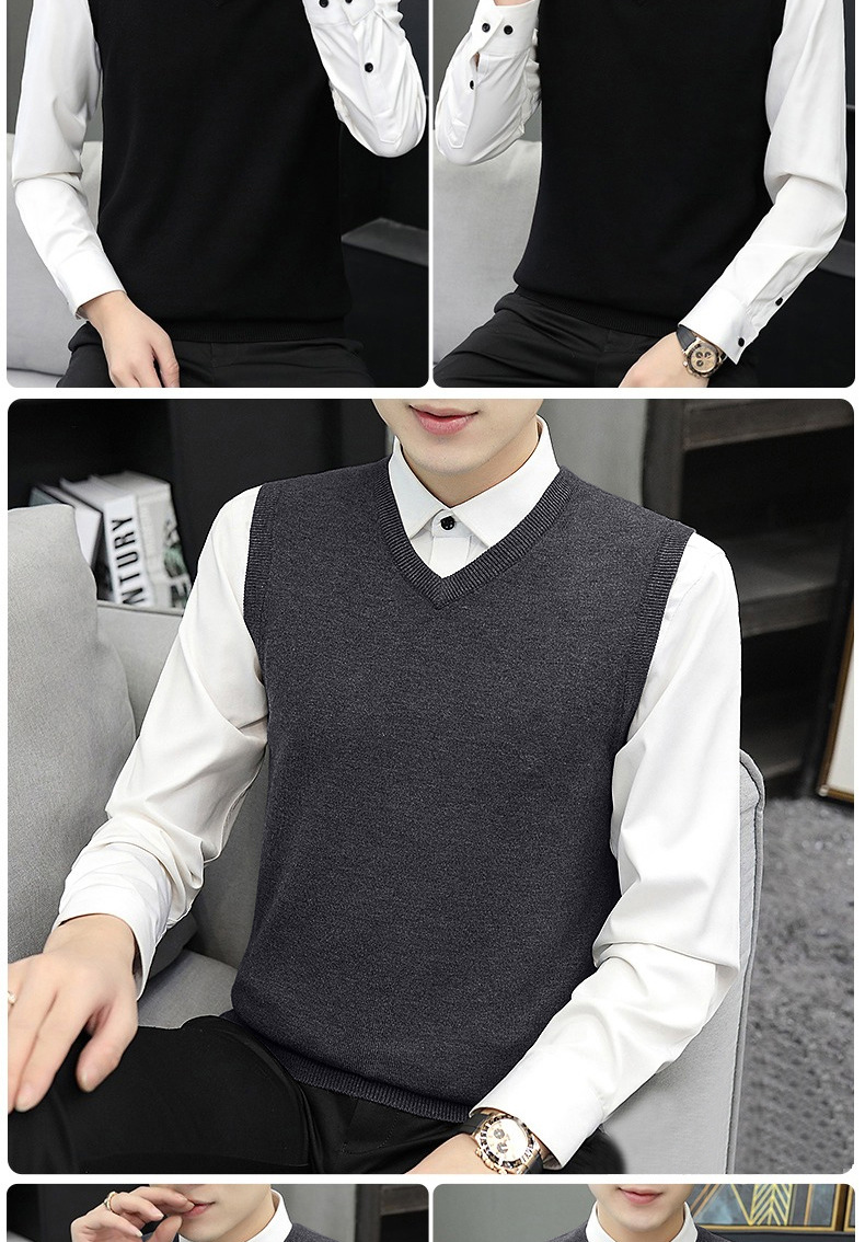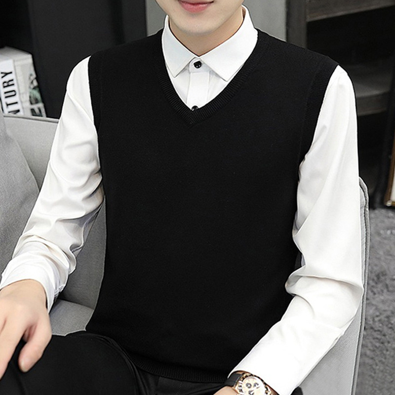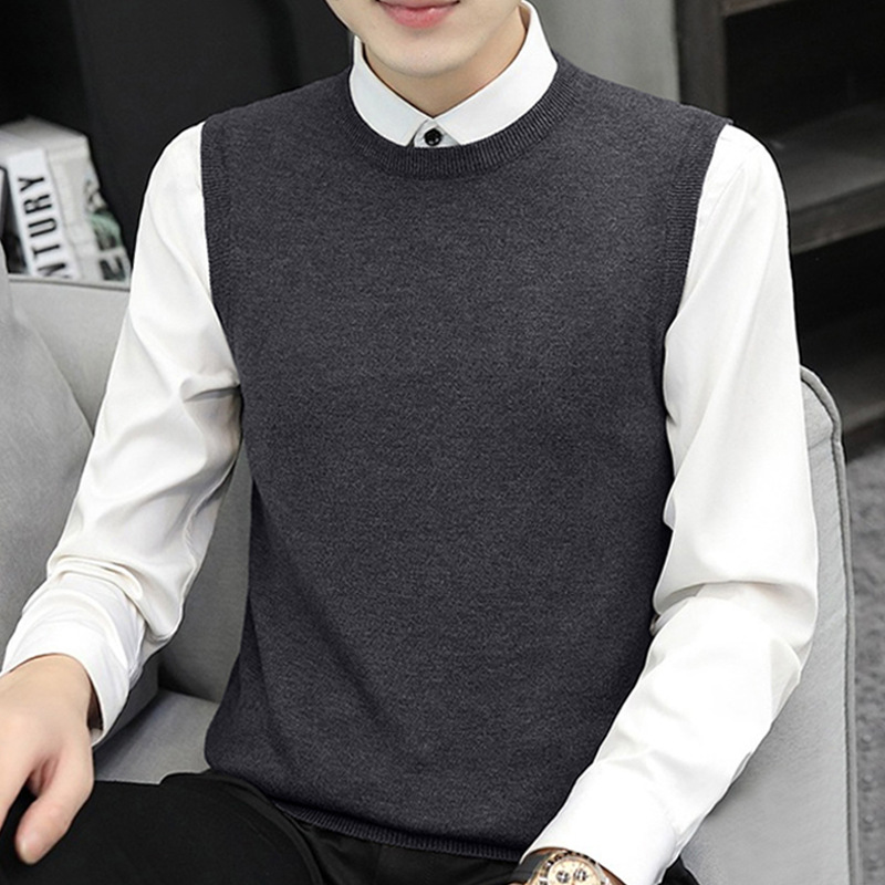 민소매 스웨터 니트 조끼 남성 가을과 겨울 따뜻한 풀오버 라운드 넥 스웨터 양복 조끼 남성 양복 조끼 트렌드 모든 매치스토어 가기