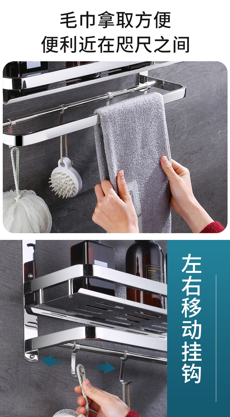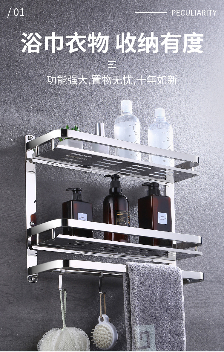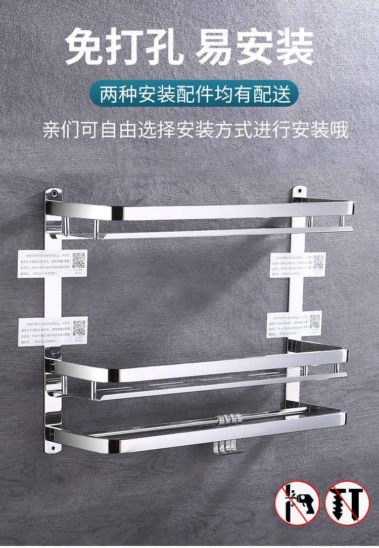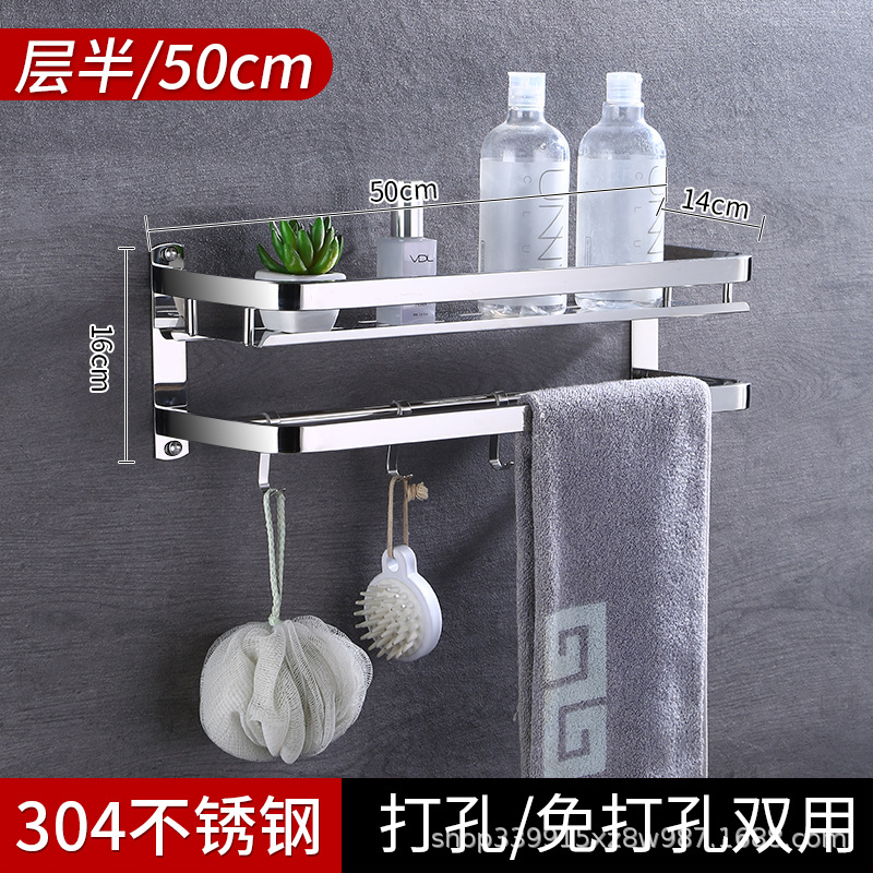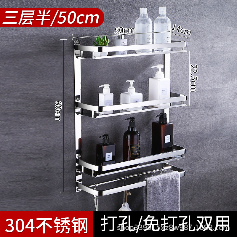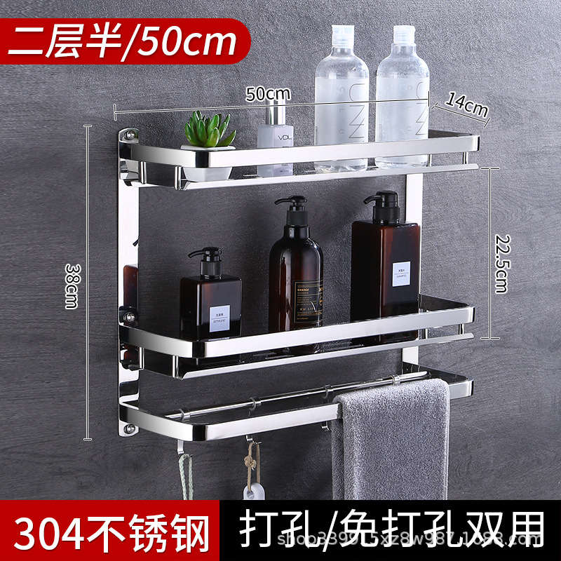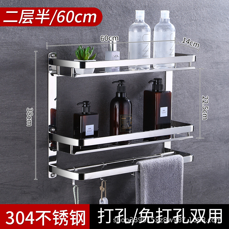 304 스테인레스 스틸 욕실 스토리지 랙 펀치 프리 더블 3 층 배수 랙 타월 랙