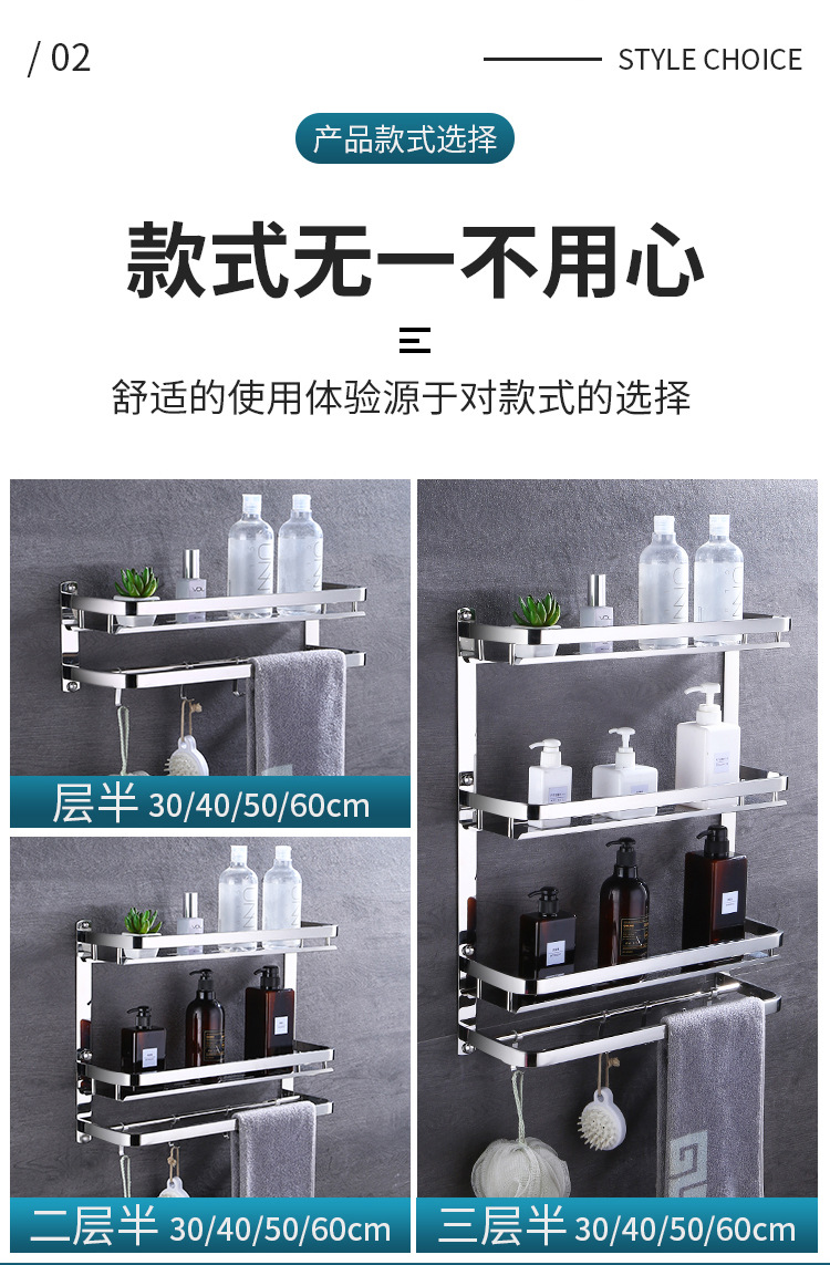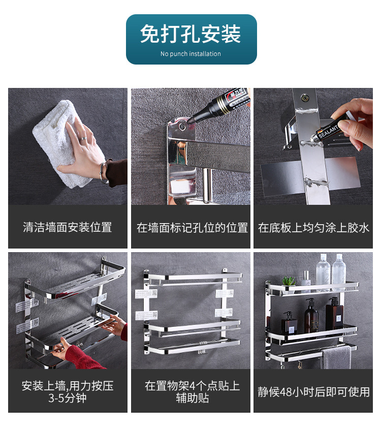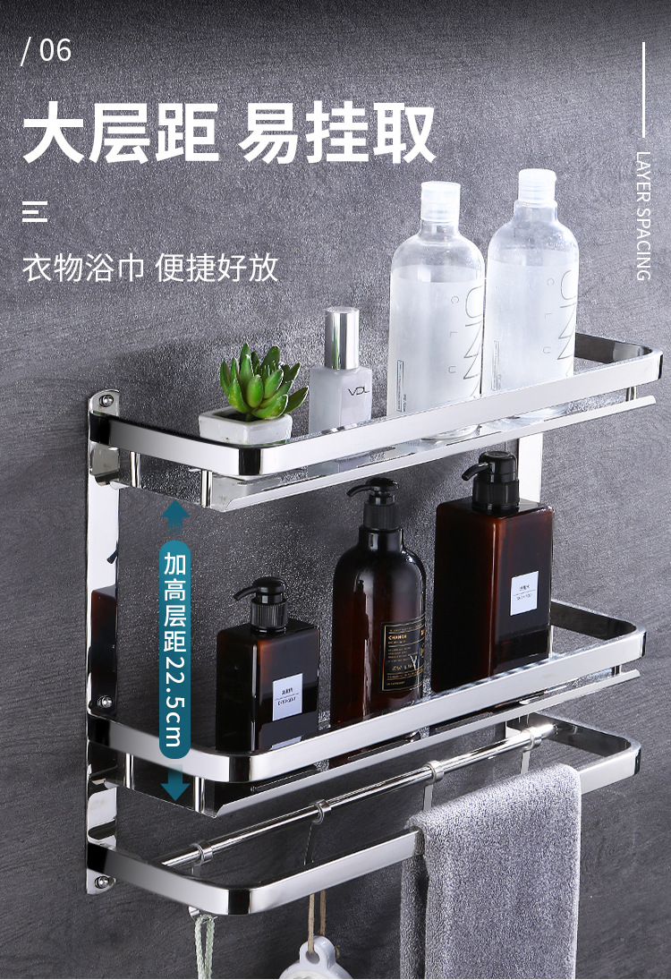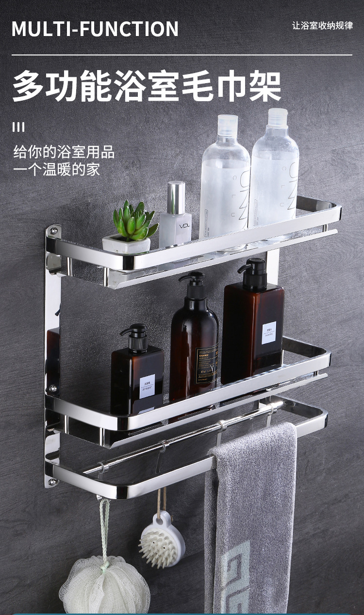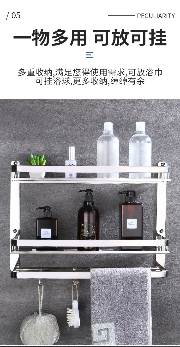 304 스테인레스 스틸 욕실 스토리지 랙 펀치 프리 더블 3 층 배수 랙 타월 랙