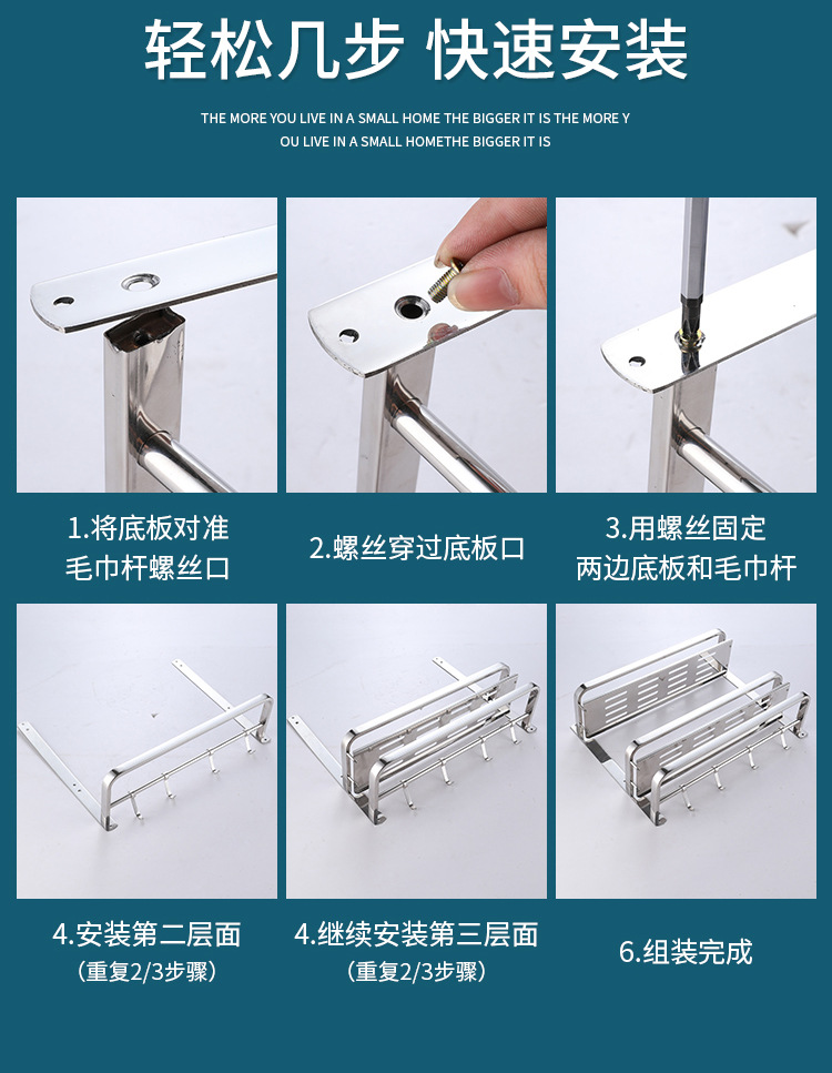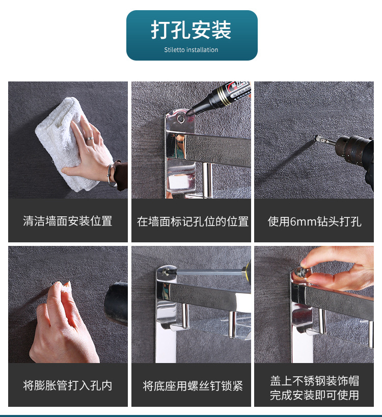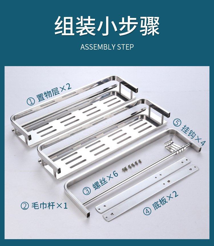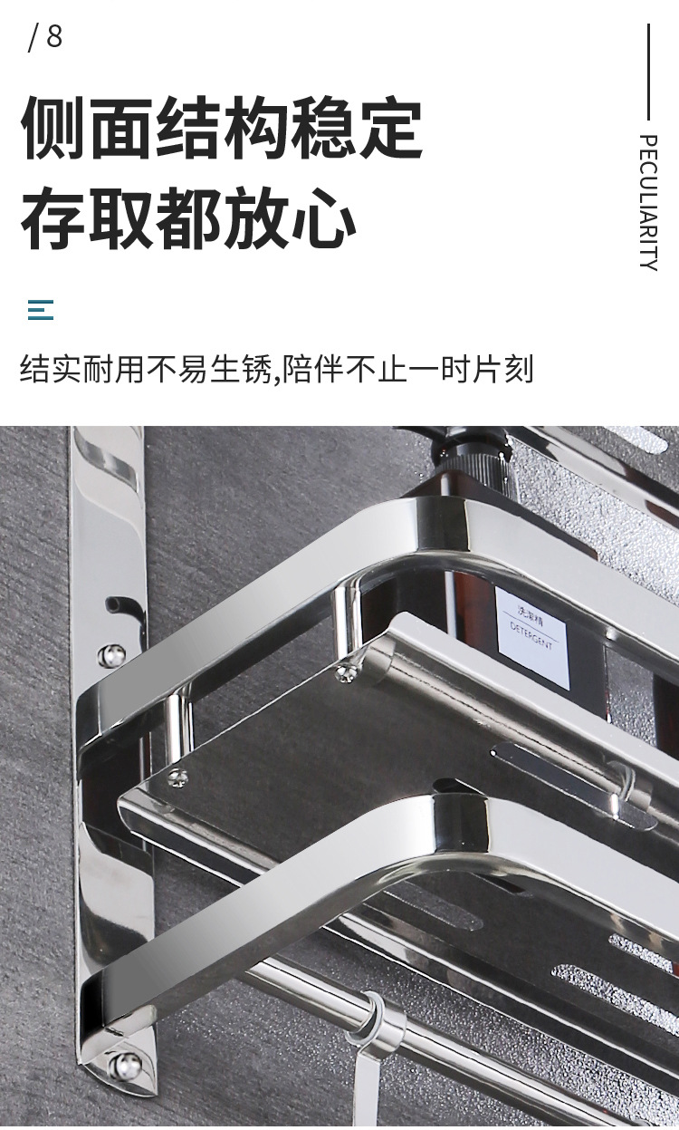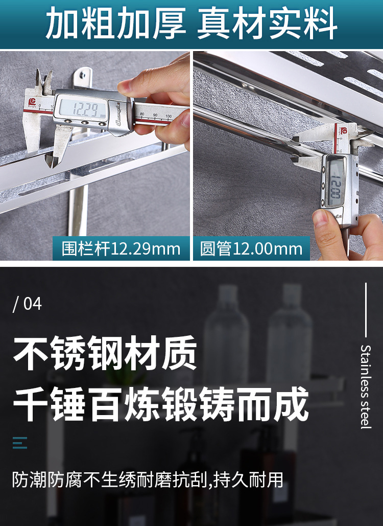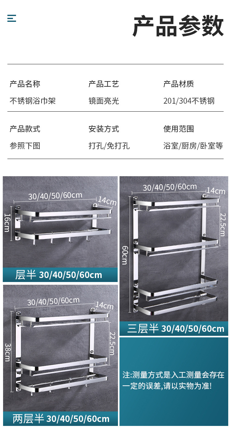 304 스테인레스 스틸 욕실 스토리지 랙 펀치 프리 더블 3 층 배수 랙 타월 랙