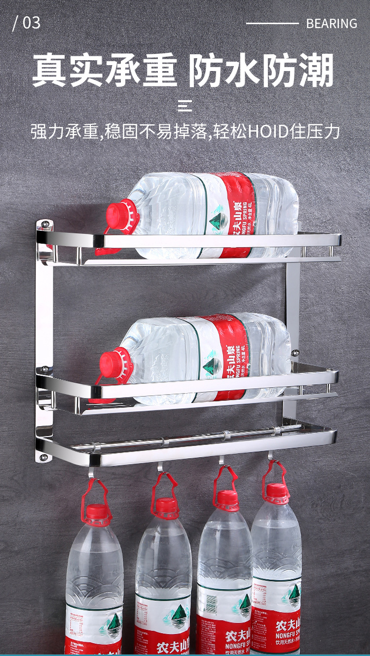 304 스테인레스 스틸 욕실 스토리지 랙 펀치 프리 더블 3 층 배수 랙 타월 랙스토어 가기