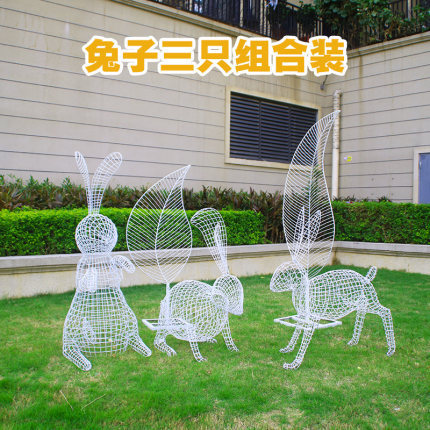 야외 풍경 장식 단철 동물 장식품 조각 스테인레스 스틸 중공 토끼 빛나는 새 풍경 스케치