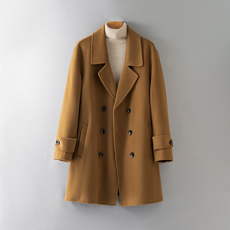 100 울 울 코트 롱 더블 브레스트 모직 코트 남성 양면 캐시미어 프리 코트 도매스토어 가기