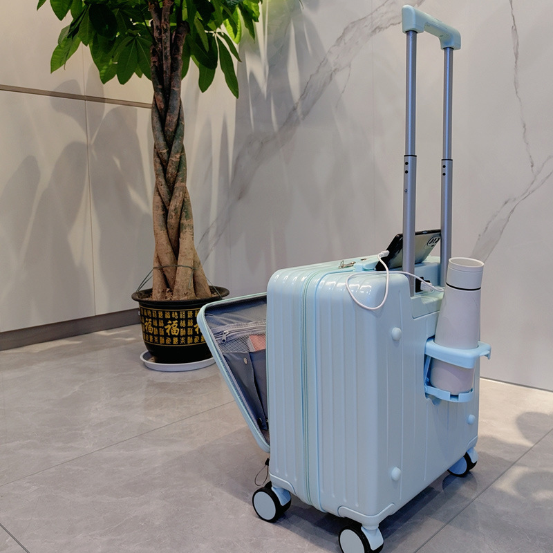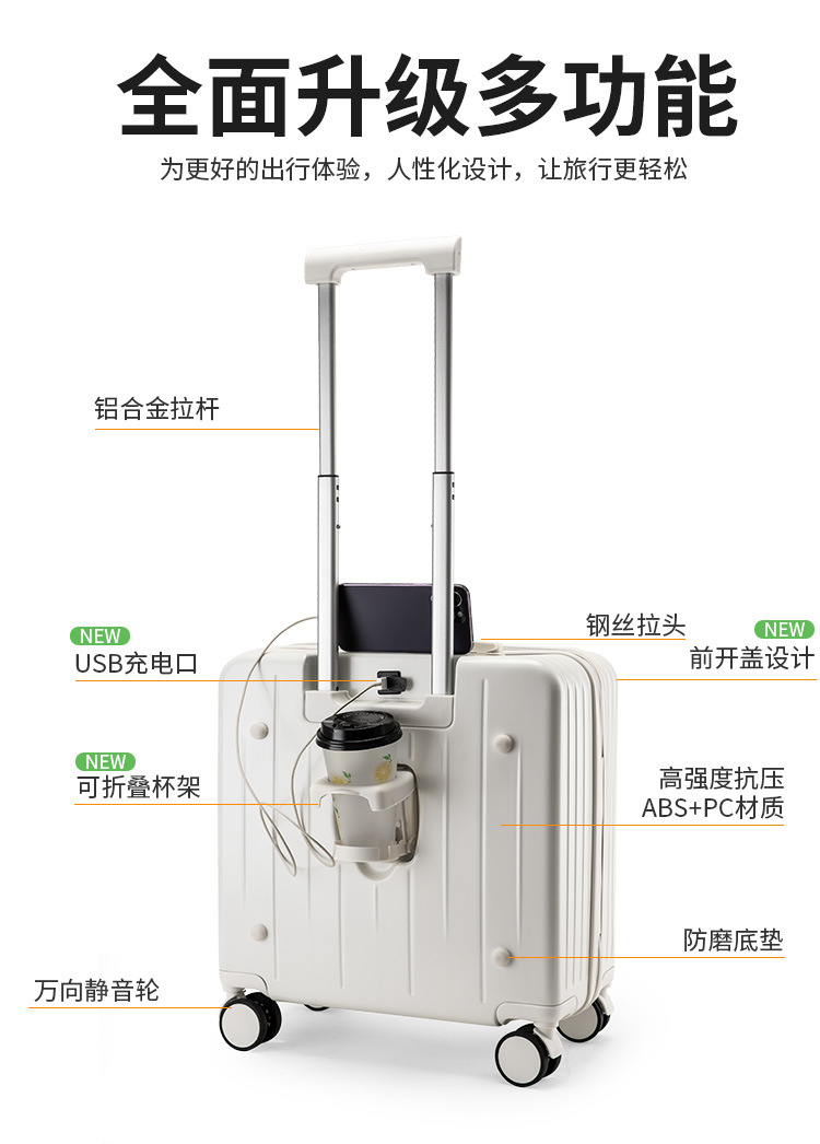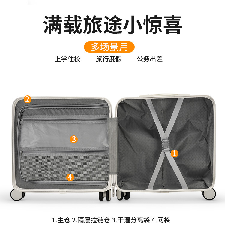 다기능 전면 개방 보딩 박스 소형 유니버설 휠 가방 남성용 및 여성용 18 인치 수하물 비밀번호 가죽 케이스 24스토어 가기