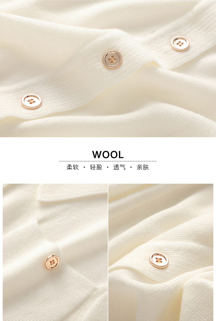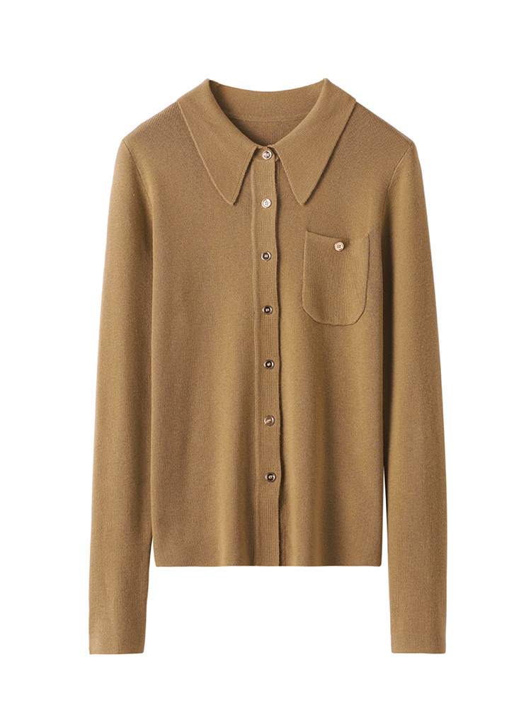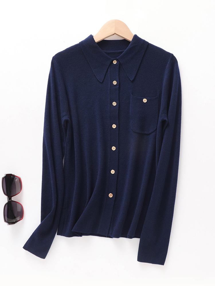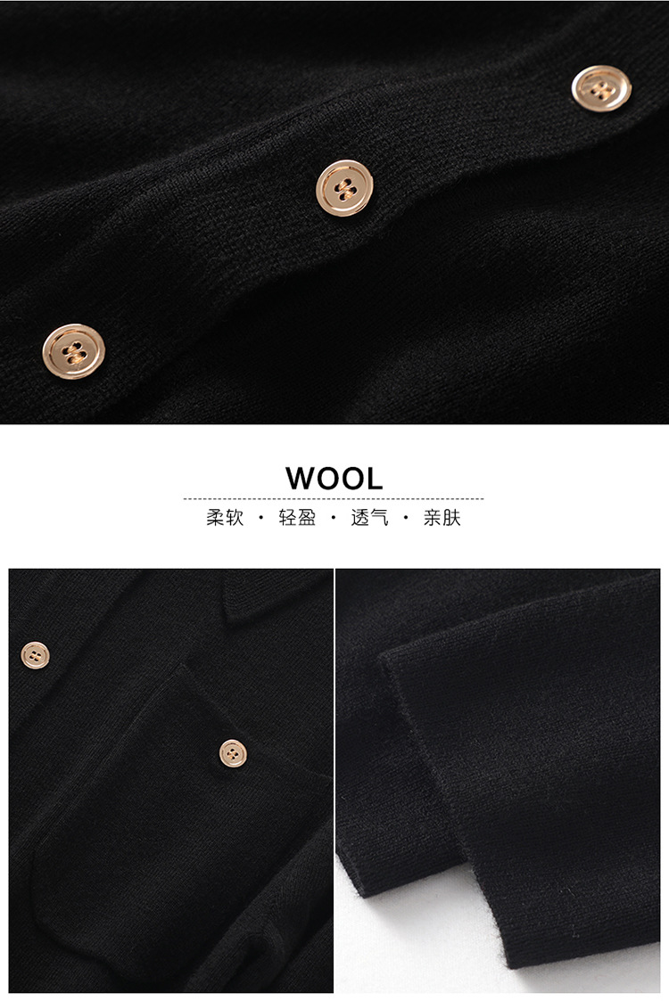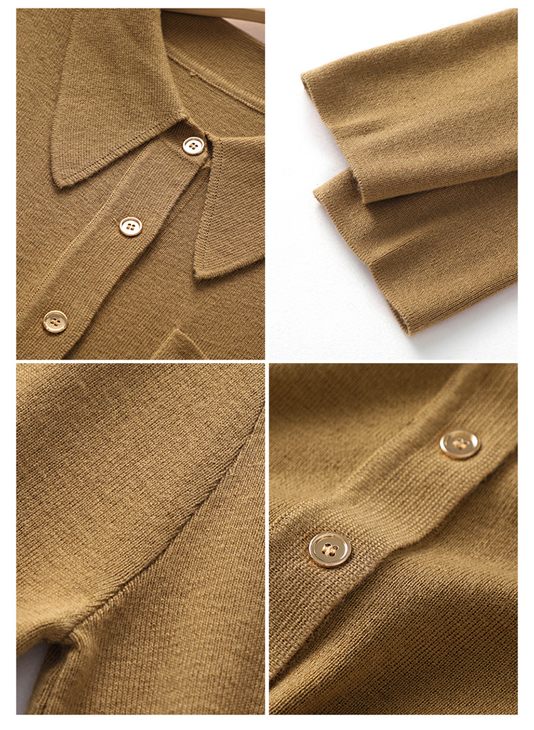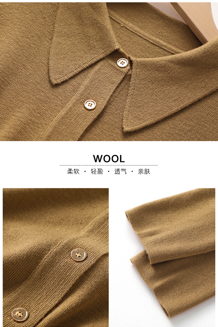 POLO 칼라 니트 셔츠 우아한 옷깃 단색 울 재킷 봄과 가을 새로운 여성의 얇은 스웨터 가디건