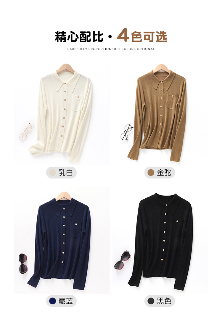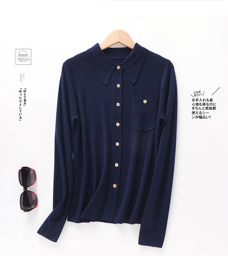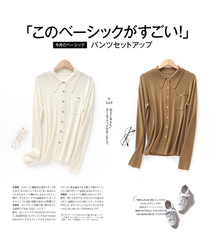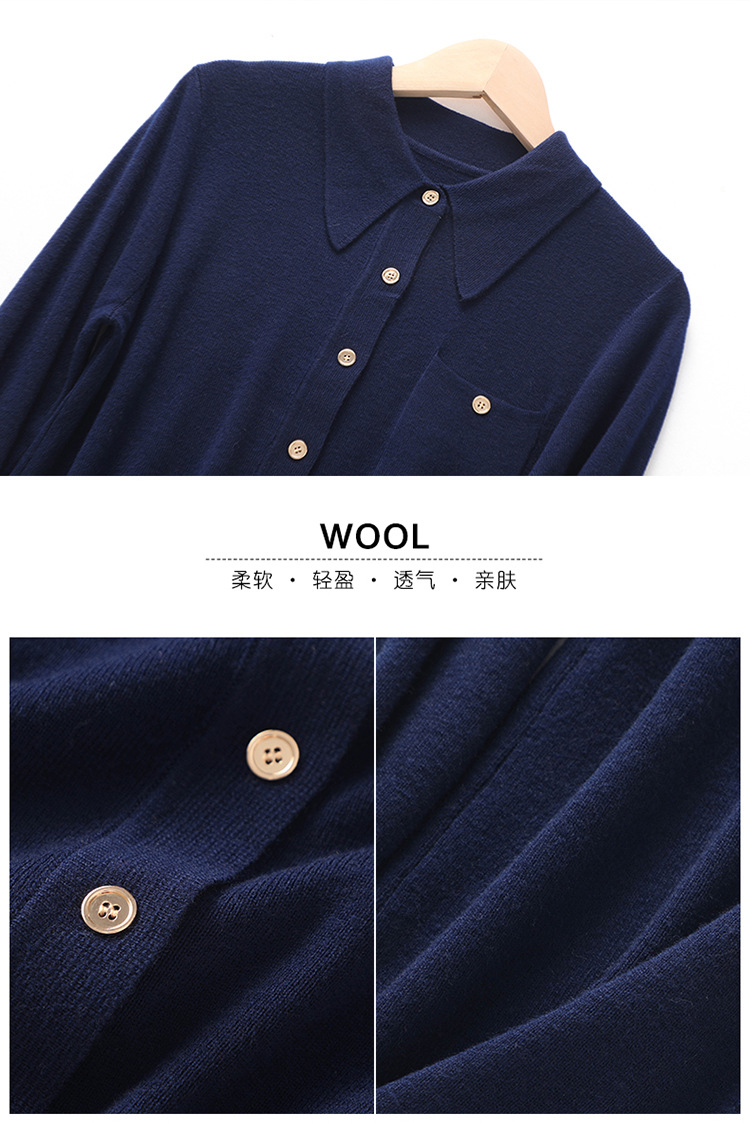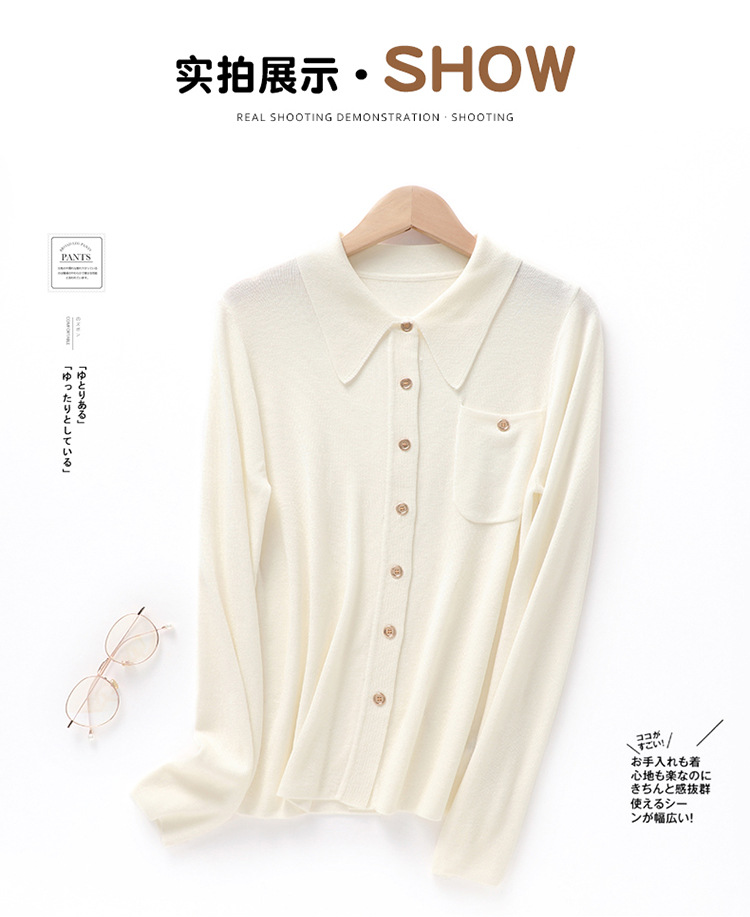 POLO 칼라 니트 셔츠 우아한 옷깃 단색 울 재킷 봄과 가을 새로운 여성의 얇은 스웨터 가디건스토어 가기