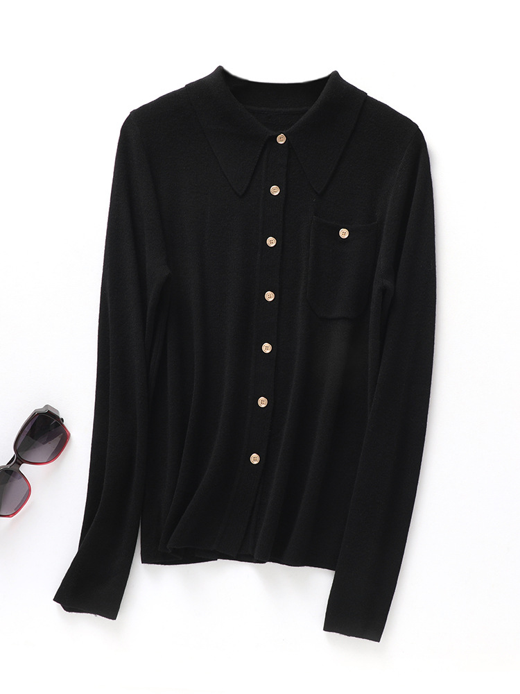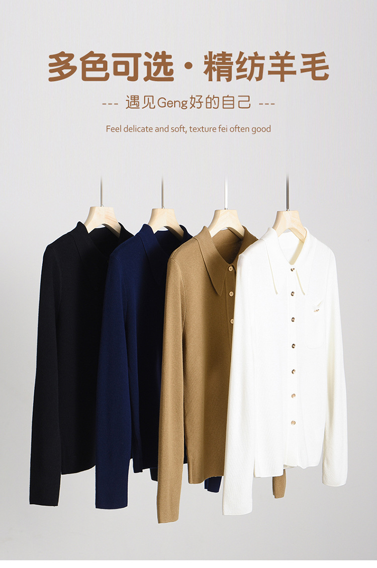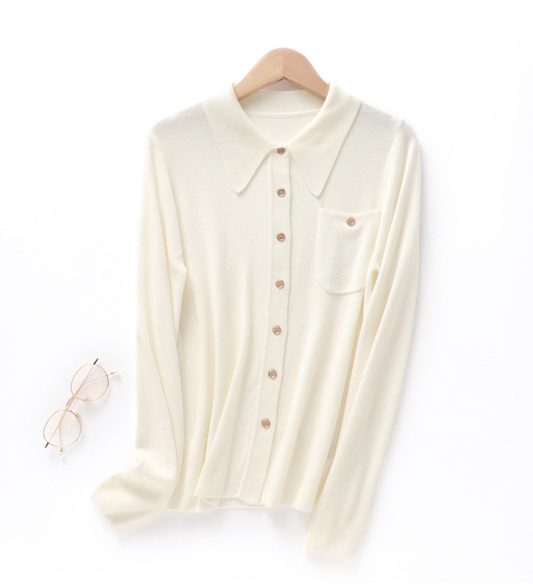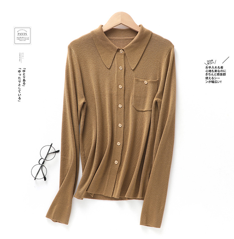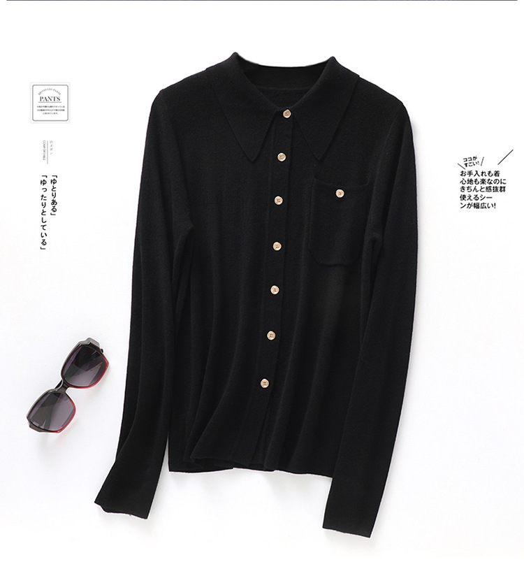 POLO 칼라 니트 셔츠 우아한 옷깃 단색 울 재킷 봄과 가을 새로운 여성의 얇은 스웨터 가디건스토어 가기