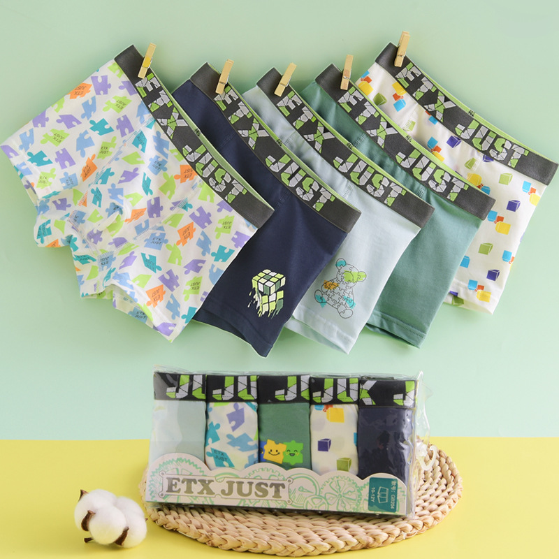 ETX 아동 속옷 남아 복서 브리프 카테고리 A 아기 바지 반바지 중형 및 대형 어린이 단색 중간 허리 복서 반바지