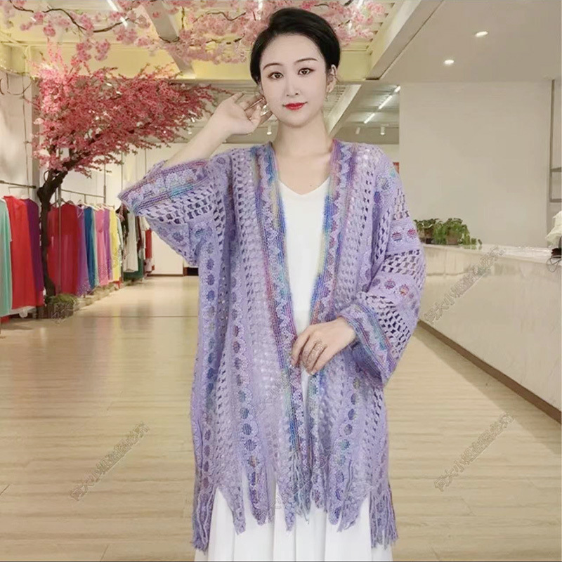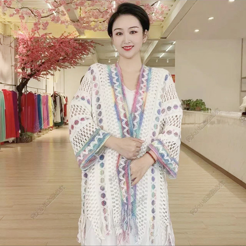 새로운 색상 스트라이프 중공 민족 스타일 숄 여행 사진 외부 술 에어컨 룸 니트 통기성