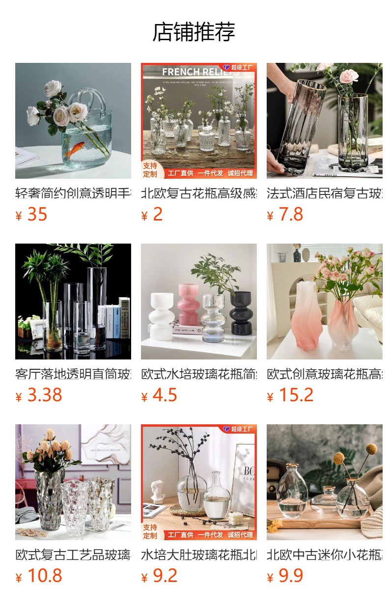 인터넷 유명인 꽃 배열 장식품 빈티지 꽃병 유리 도매 꽃 풍부한 대나무 수경 북유럽 유리 꽃병스토어 가기