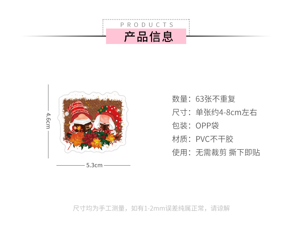 60 새로운 크로스 국경 크리스마스 난쟁이 스티커 창 유리 스티커 장면 레이아웃 크리스마스 스티커 도매스토어 가기