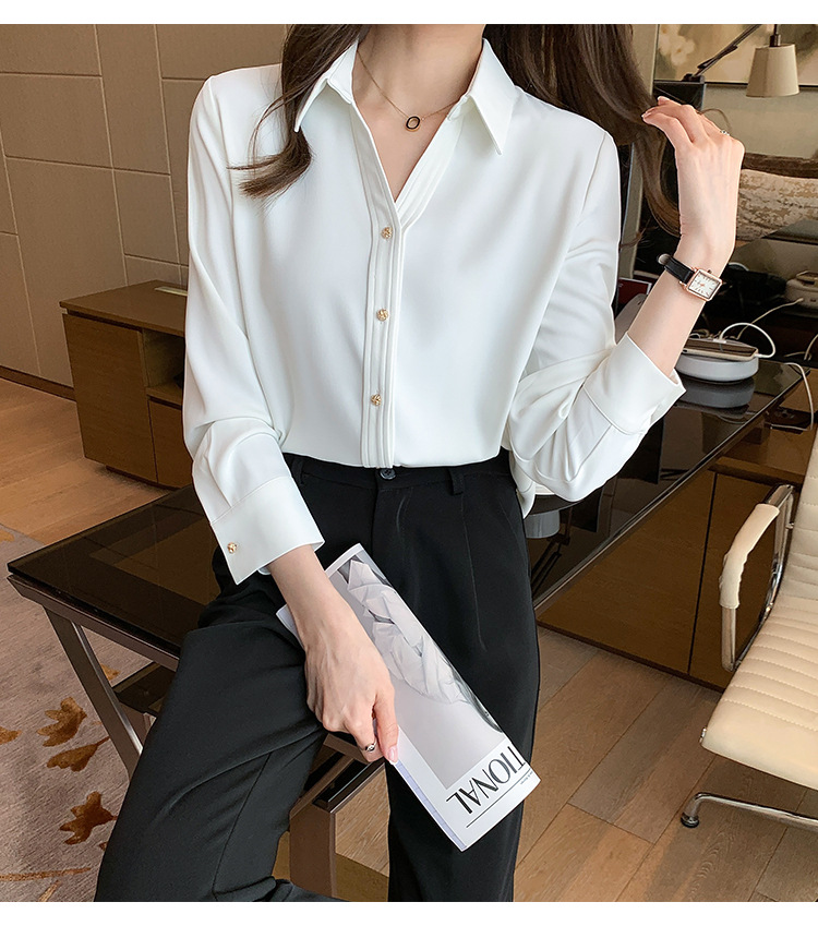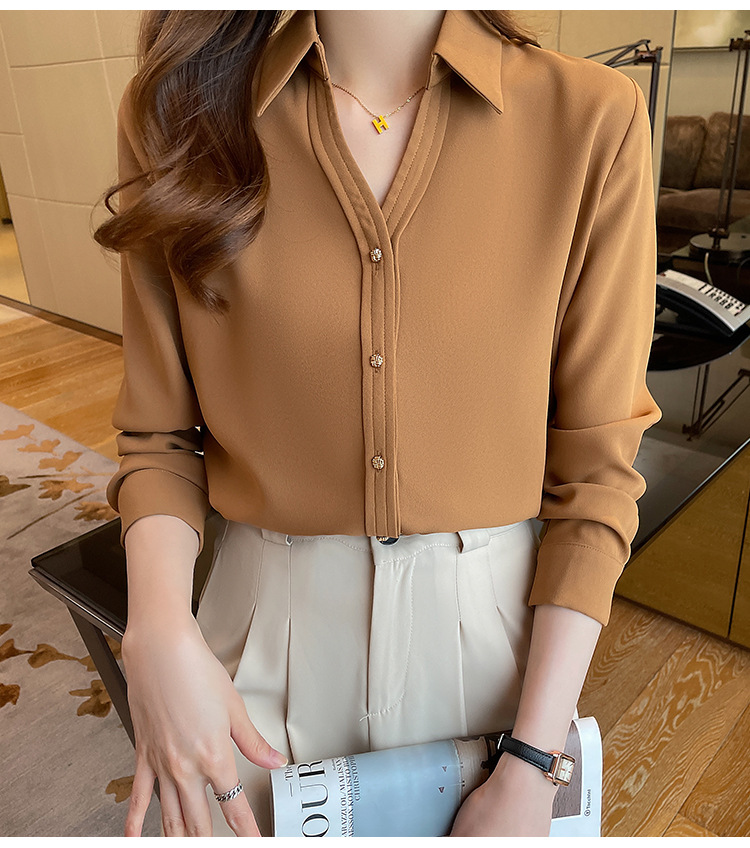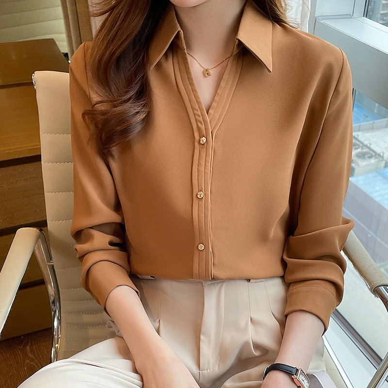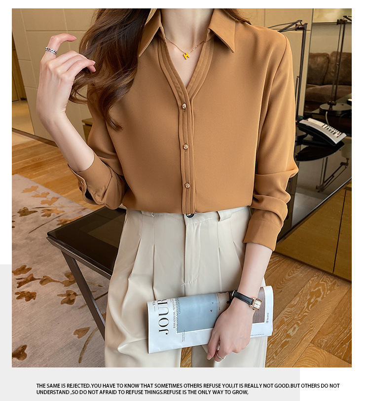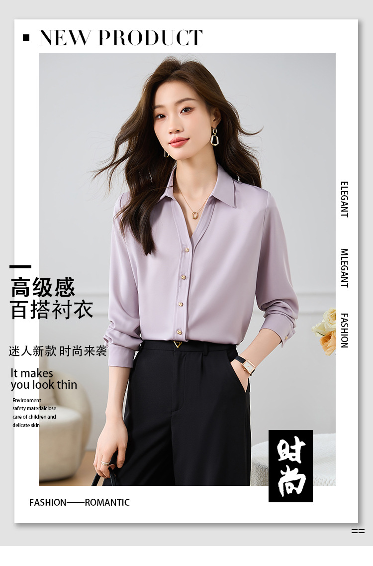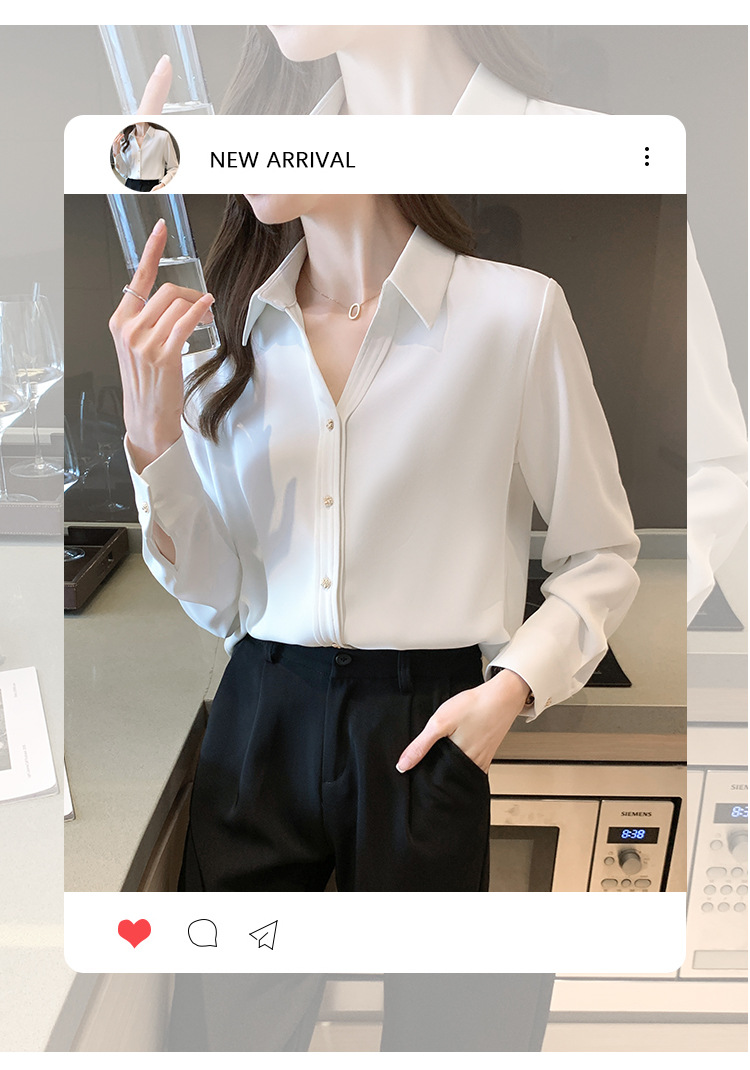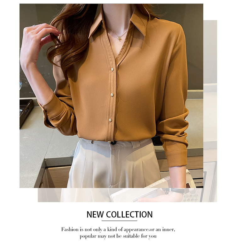 리얼 샷 재고 새틴 셔츠 여자의 느슨한 긴 소매 우아한 세로 셔츠 금속 버클 유행 슬림 쉬폰 셔츠스토어 가기