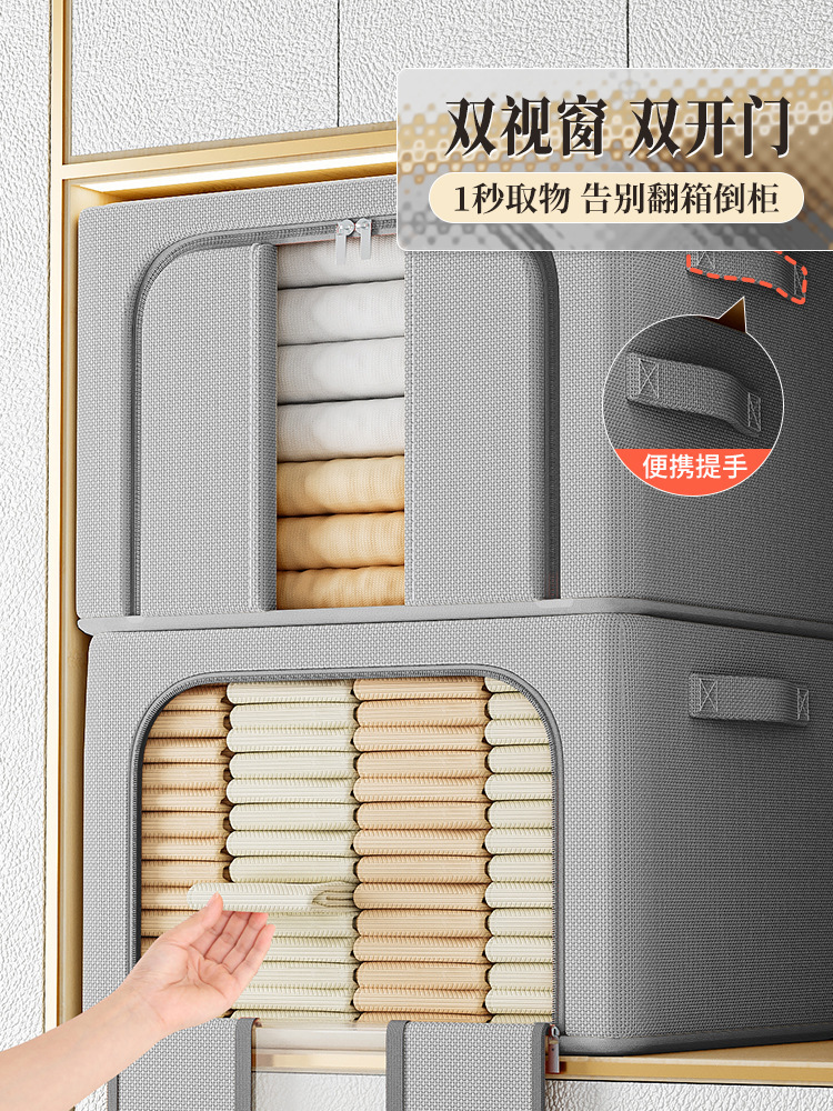 PE牛津布整理箱,是2023年首秀新面料产品,此布料特点就是防水、防尘;颜色纯色为主,精致典雅,里面钢架支撑,结实牢固;平时用于室内放一些衣物、玩具、文具书类、棉被等生活用品;不用时可以折叠存放,节省室内空间;经济实用价廉物美!