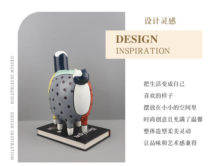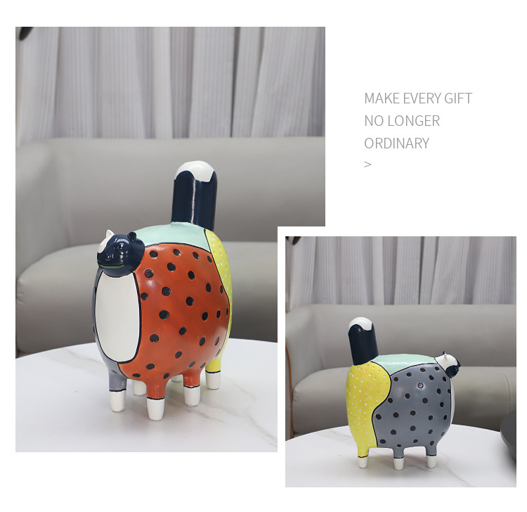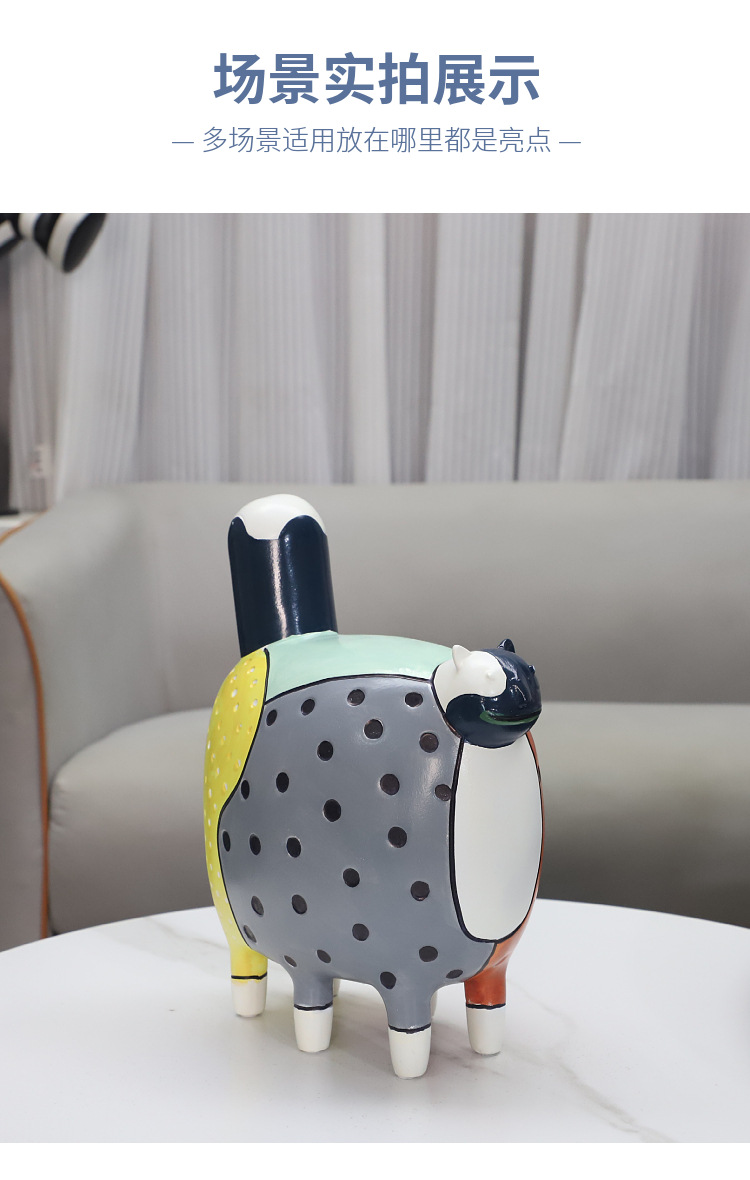 유럽 스타일 라이트 럭셔리 추상 컬러 웨이브 도트 고양이 수지 장식품 거실 침실 입구 어린이 방 홈 장식