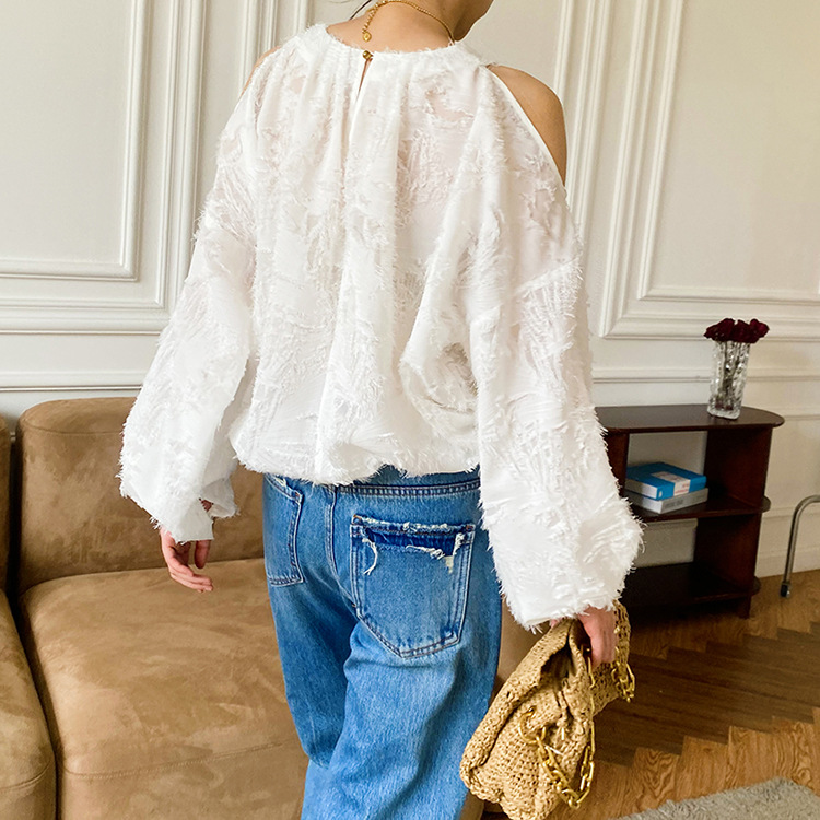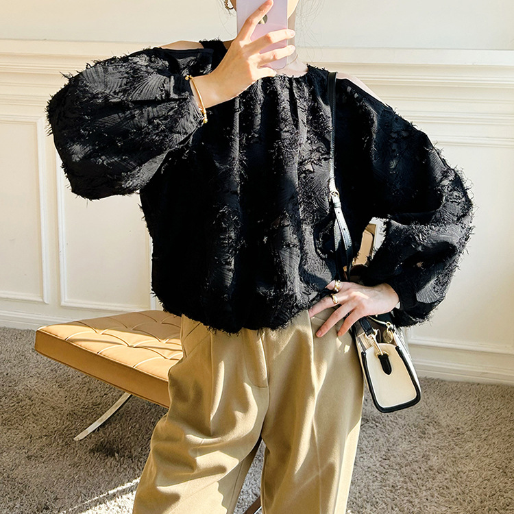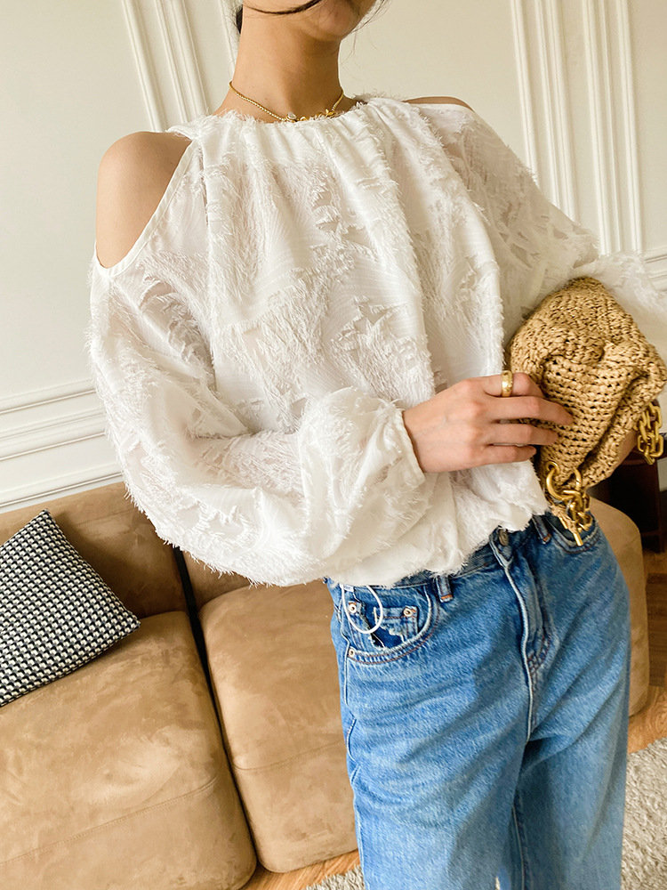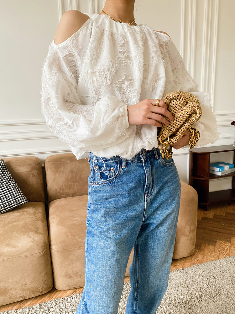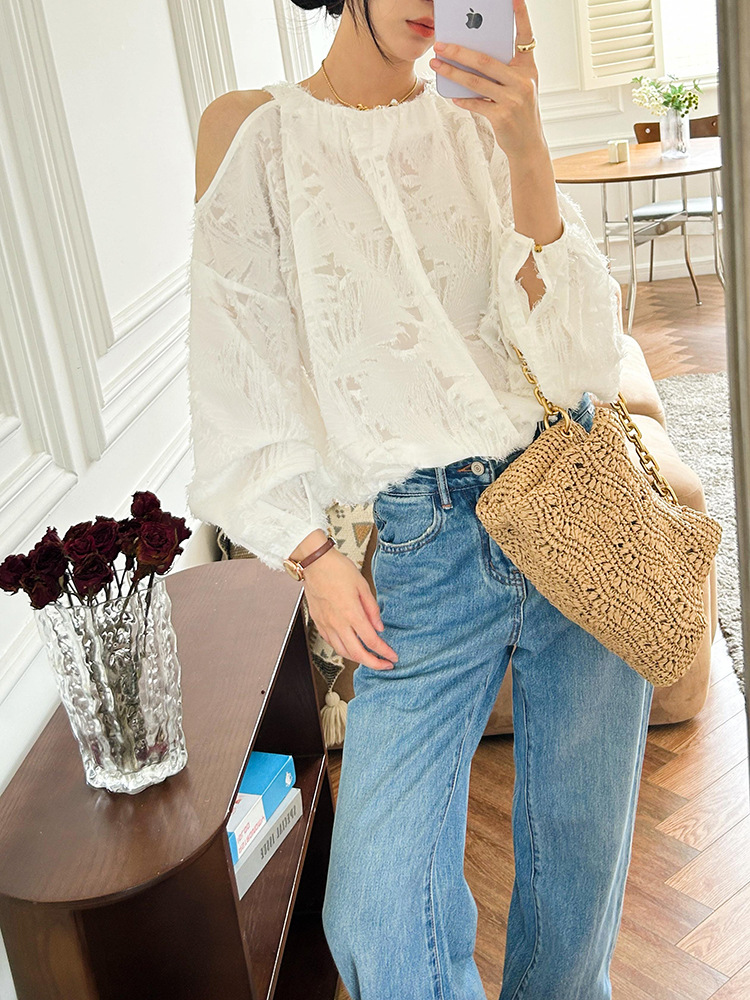 봄 신상 여성복, 유럽풍 셔츠, 여성용 자카드 쉬폰 탑, 프렌치 스타일 셔츠, 여성용 긴팔 디자인