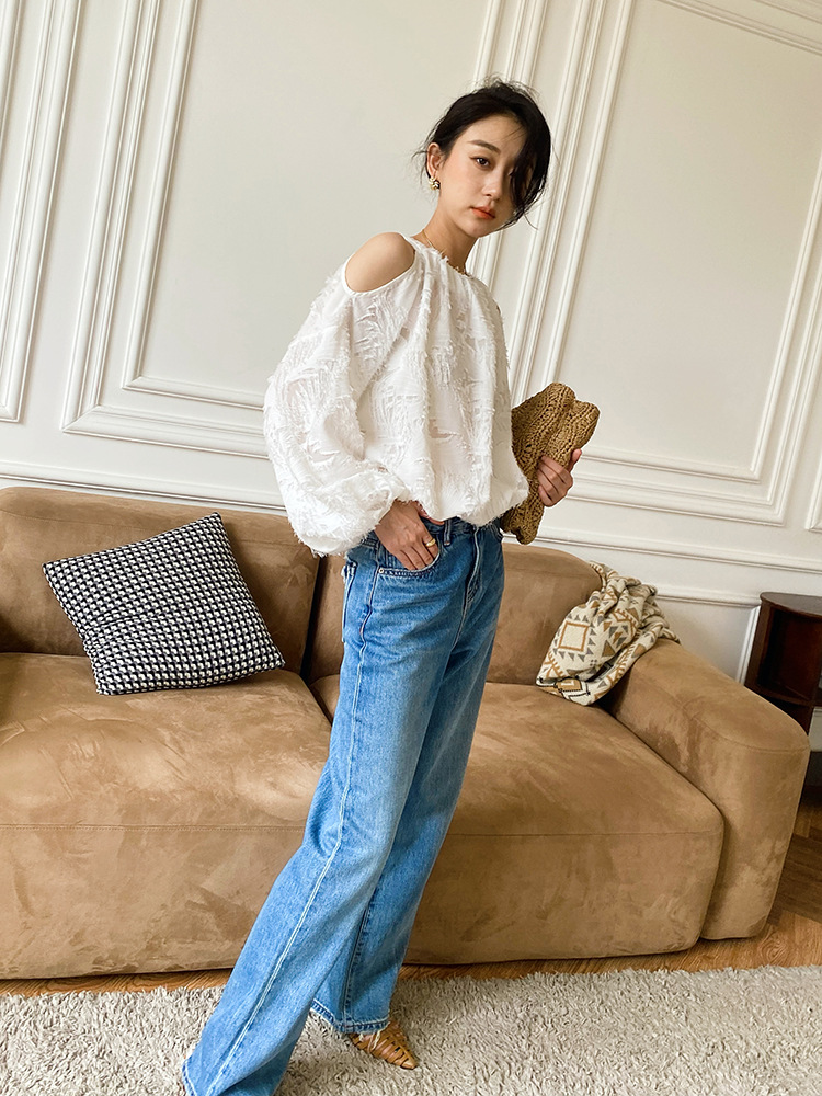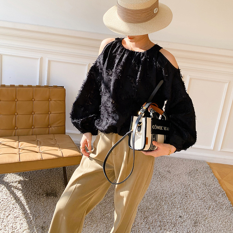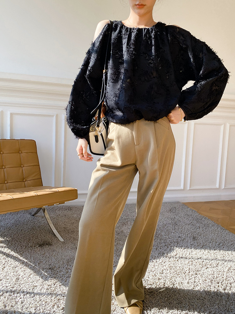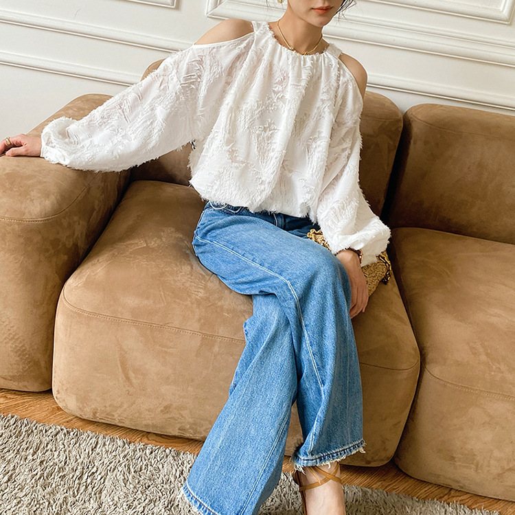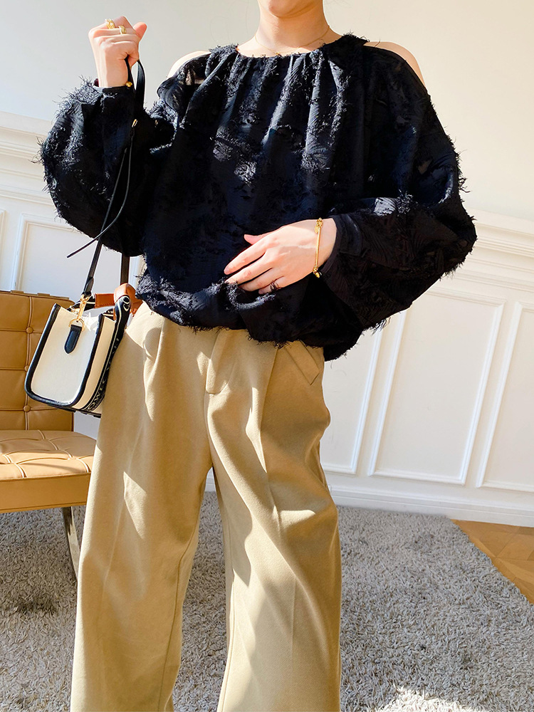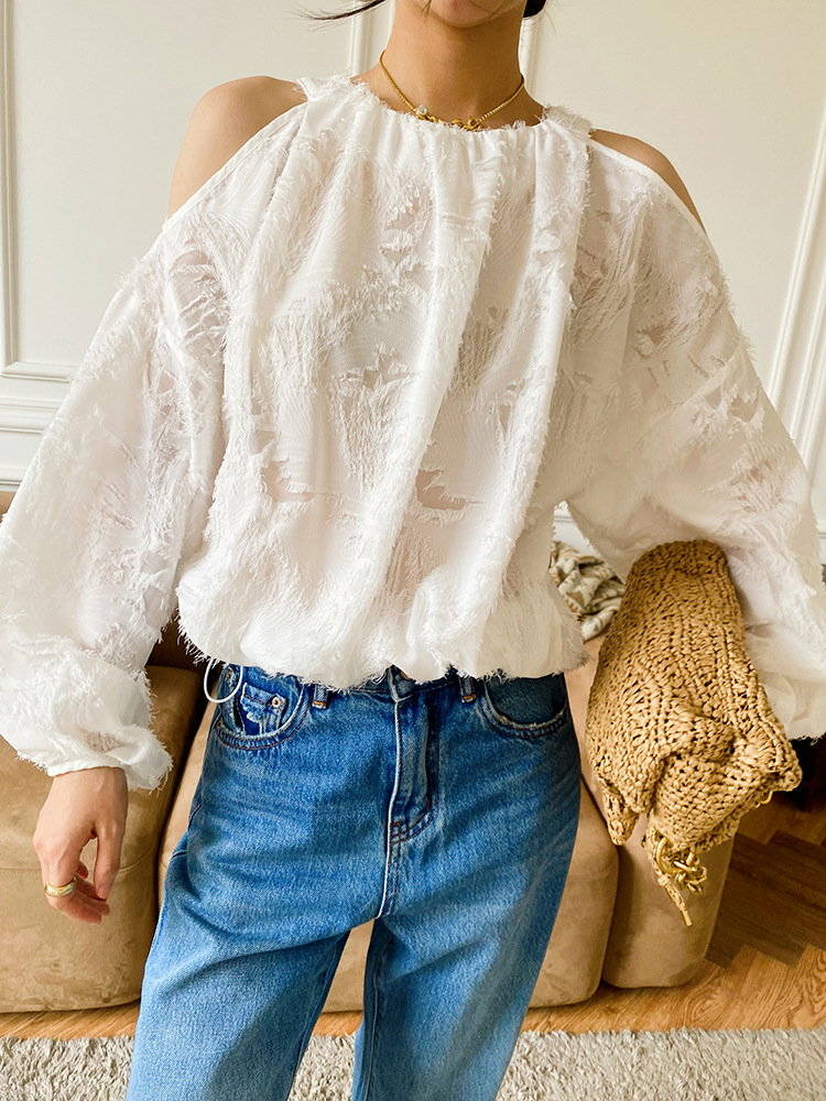 봄 신상 여성복, 유럽풍 셔츠, 여성용 자카드 쉬폰 탑, 프렌치 스타일 셔츠, 여성용 긴팔 디자인