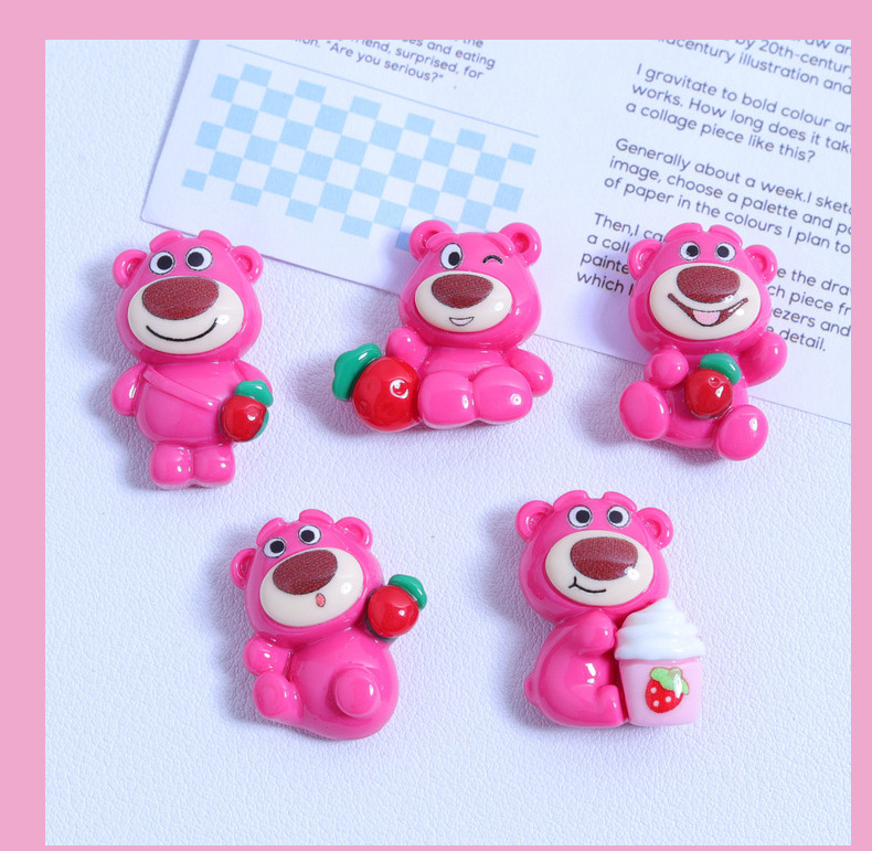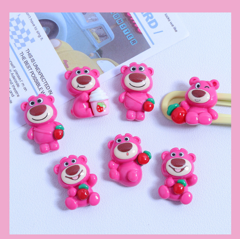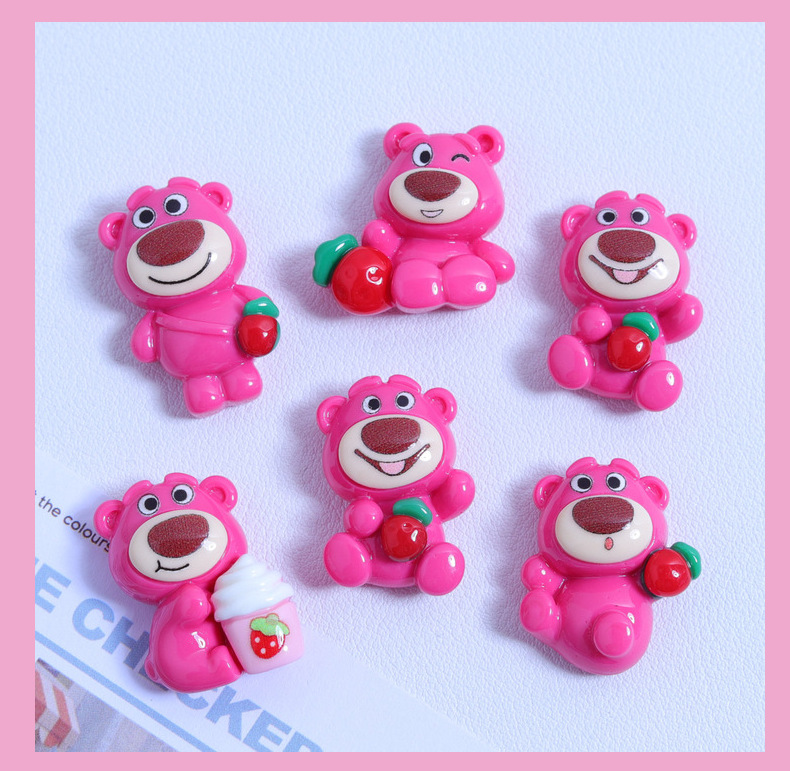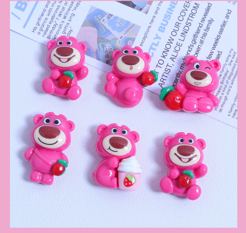 딸기 귀여운 곰 밝은 diy 크림 접착제 수제 휴대 전화 쉘 패치 머리핀 보석 재료 수지 액세서리