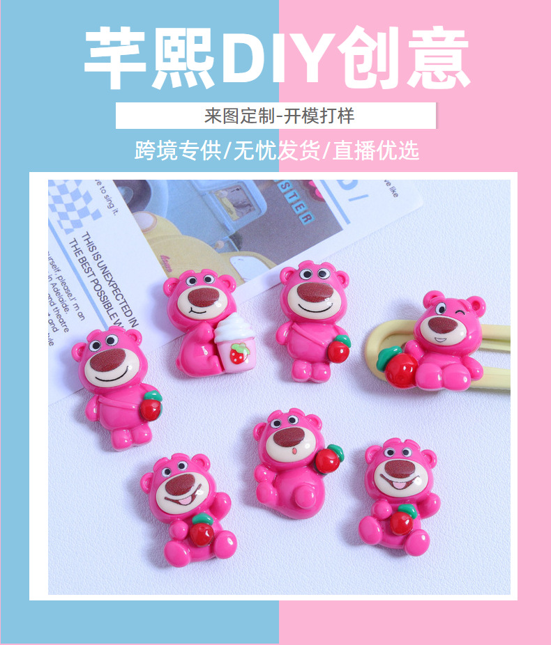 딸기 귀여운 곰 밝은 diy 크림 접착제 수제 휴대 전화 쉘 패치 머리핀 보석 재료 수지 액세서리스토어 가기