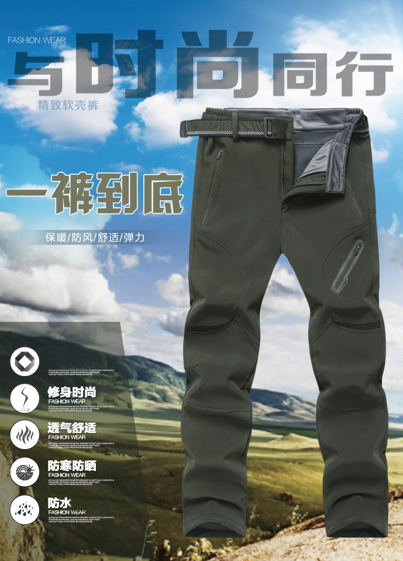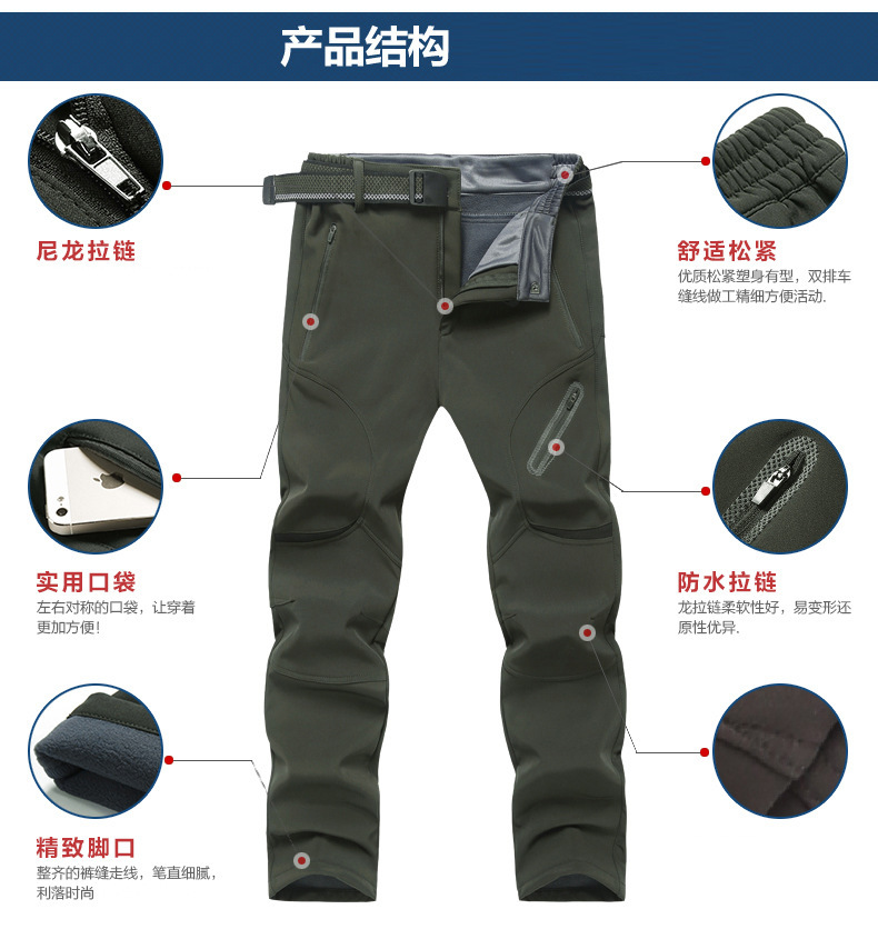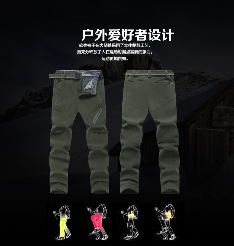 남자의 기모 두꺼운 야외 러쉬 바지 남자의 등산 방풍 방수 러쉬 바지 세트 남성스토어 가기