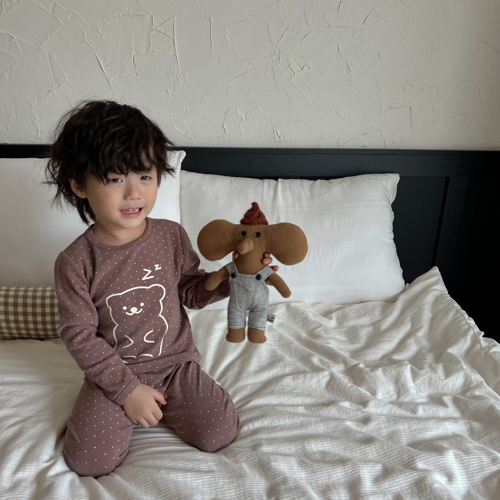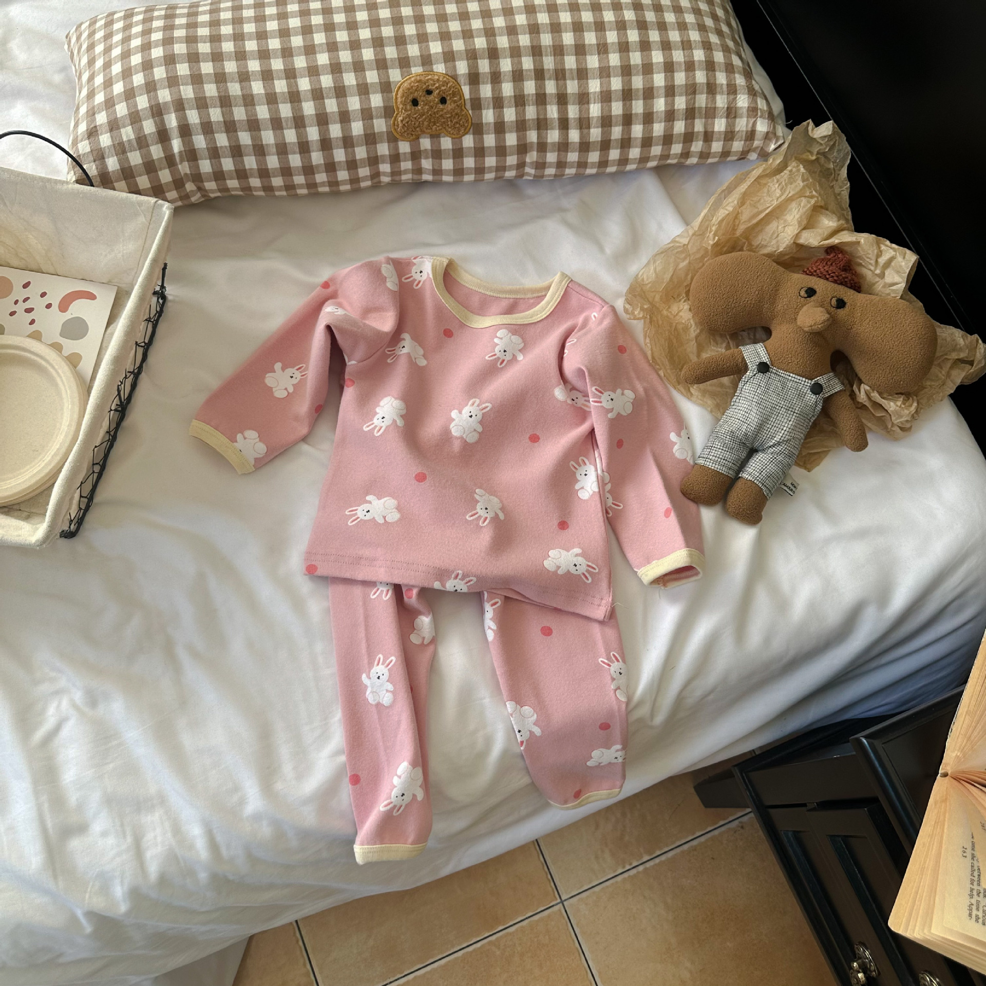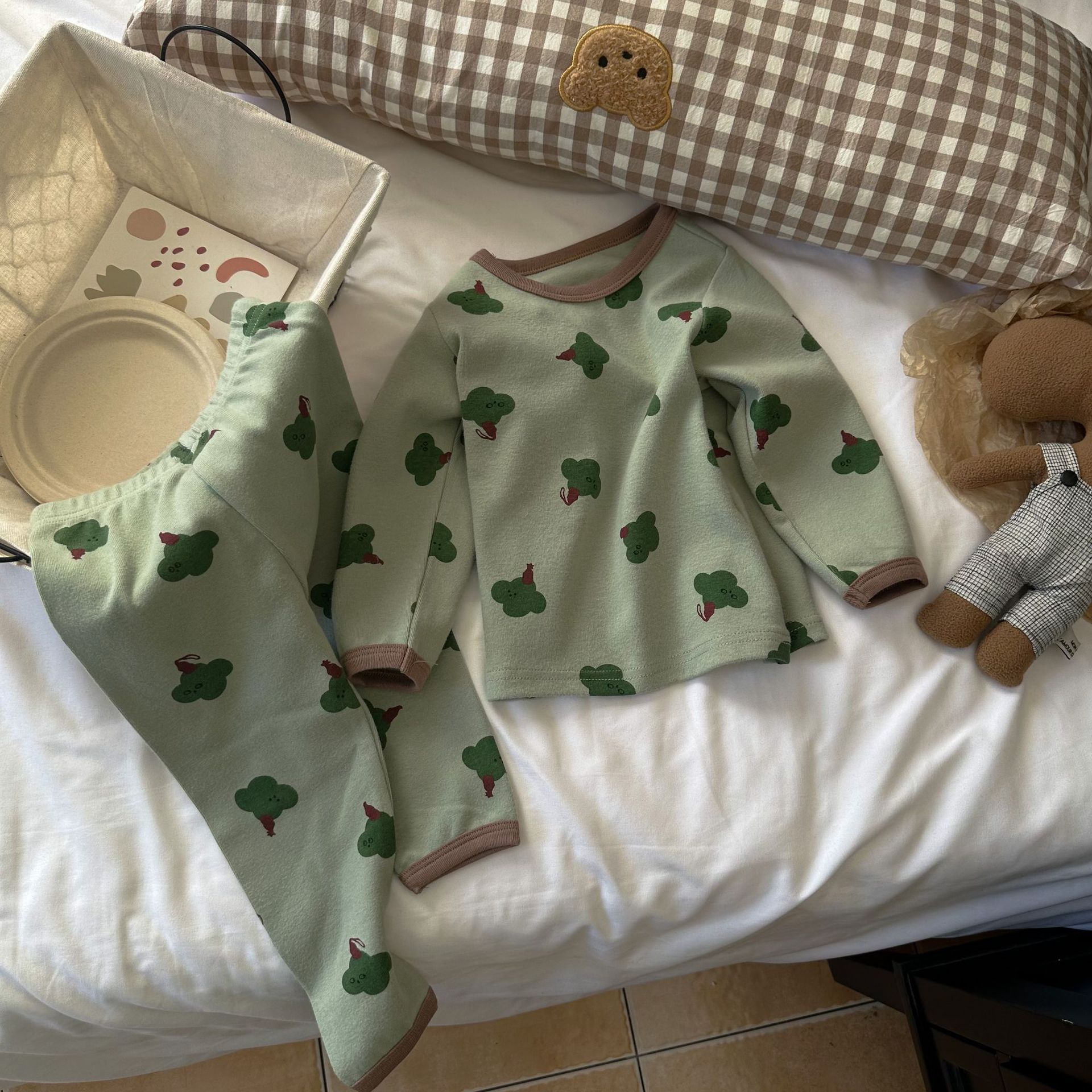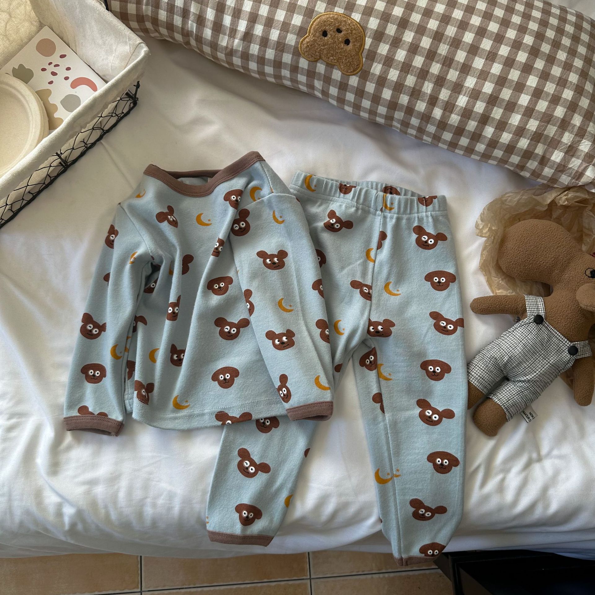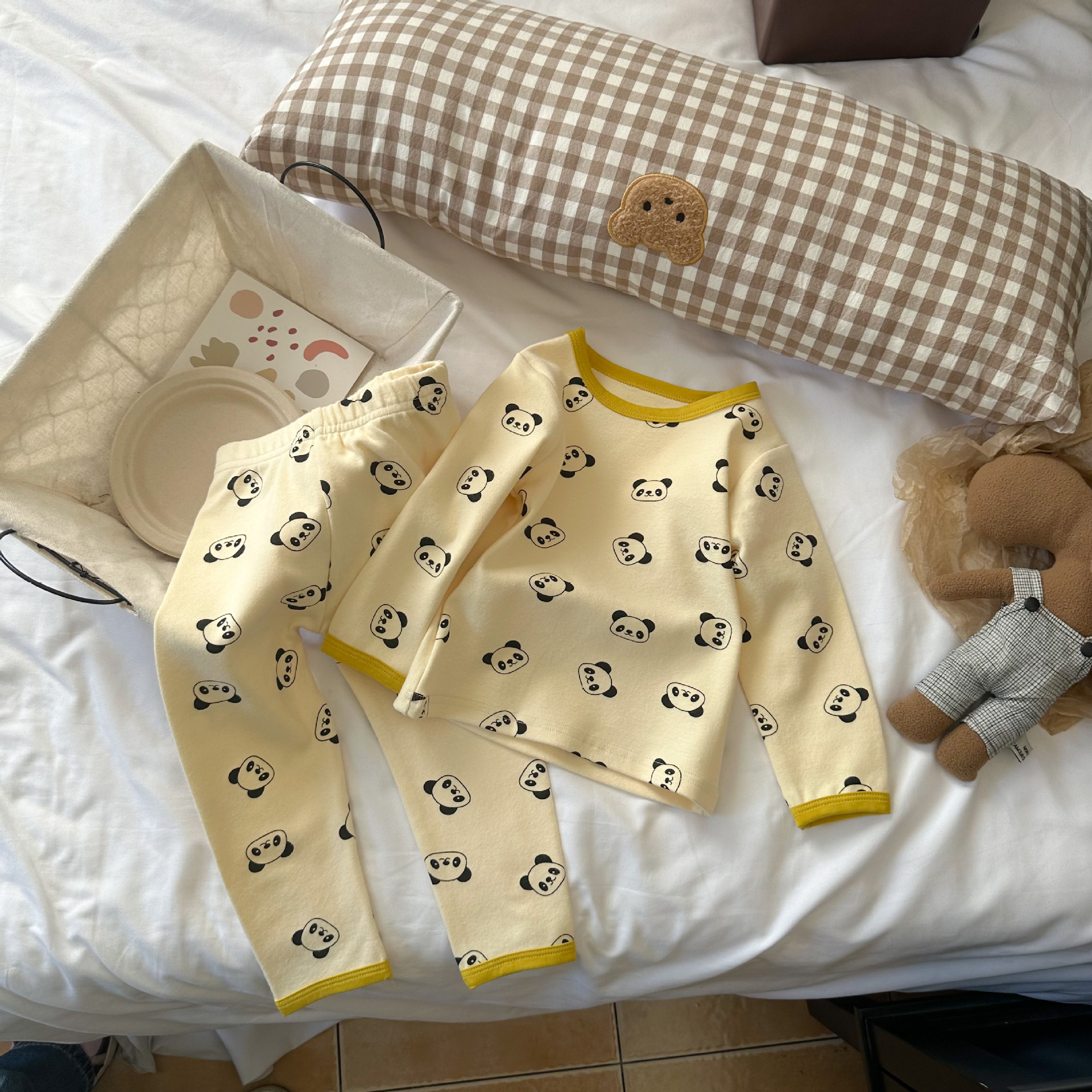 가을과 겨울 한국 스타일 어린이 울 스트레치 잠옷 아기의 순면 가정 옷 세트 소년과 소녀를위한 바닥 속옷 세트스토어 가기