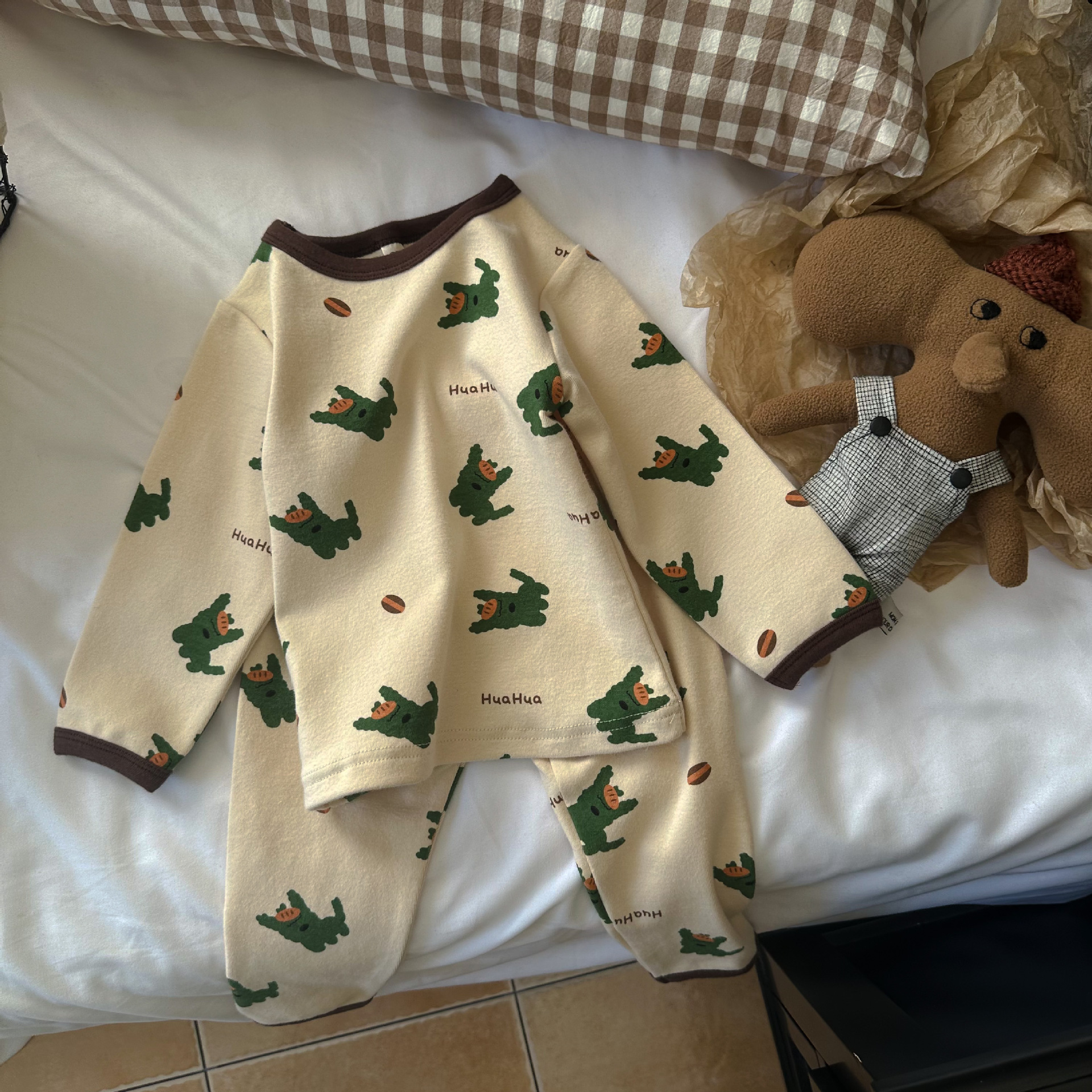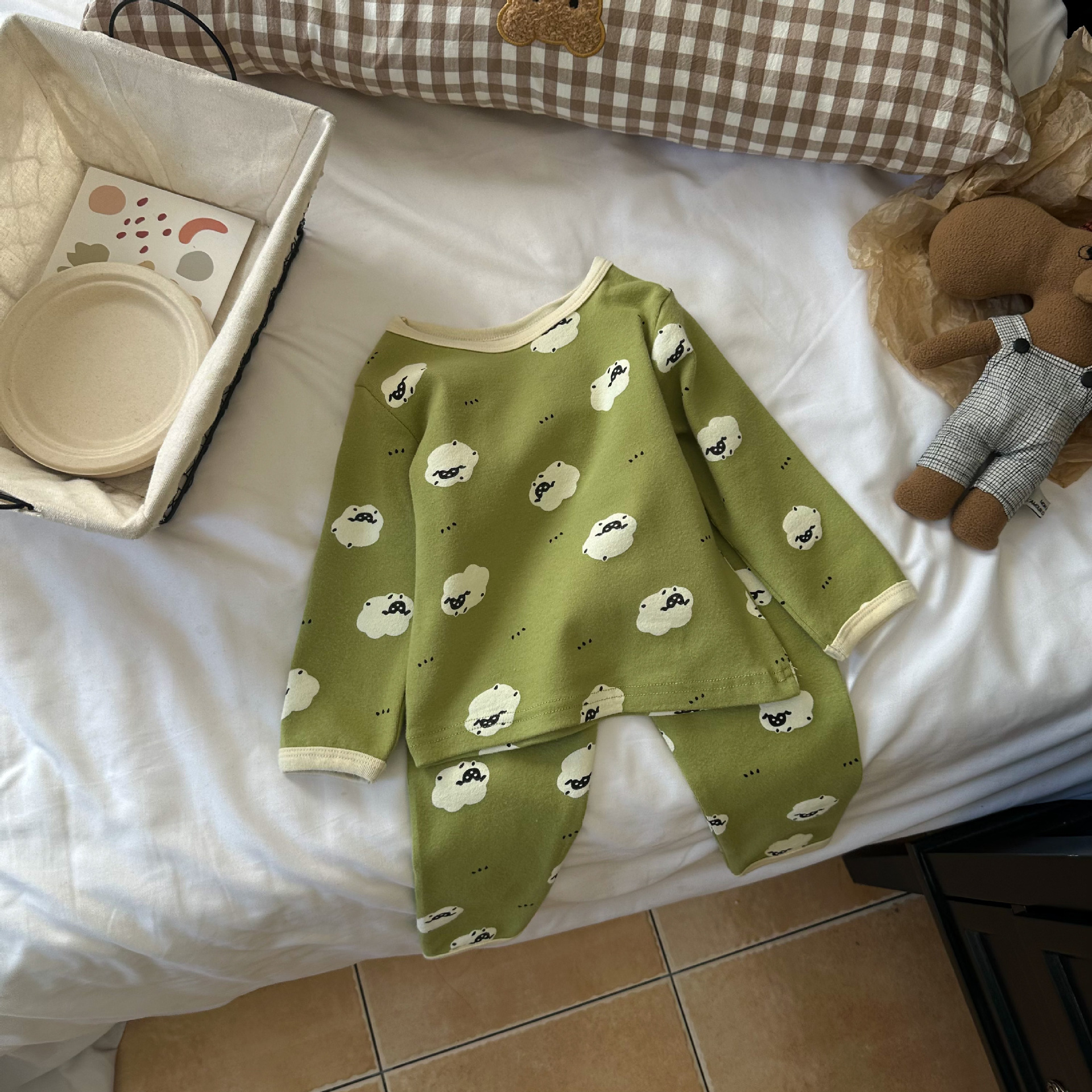 가을과 겨울 한국 스타일 어린이 울 스트레치 잠옷 아기의 순면 가정 옷 세트 소년과 소녀를위한 바닥 속옷 세트