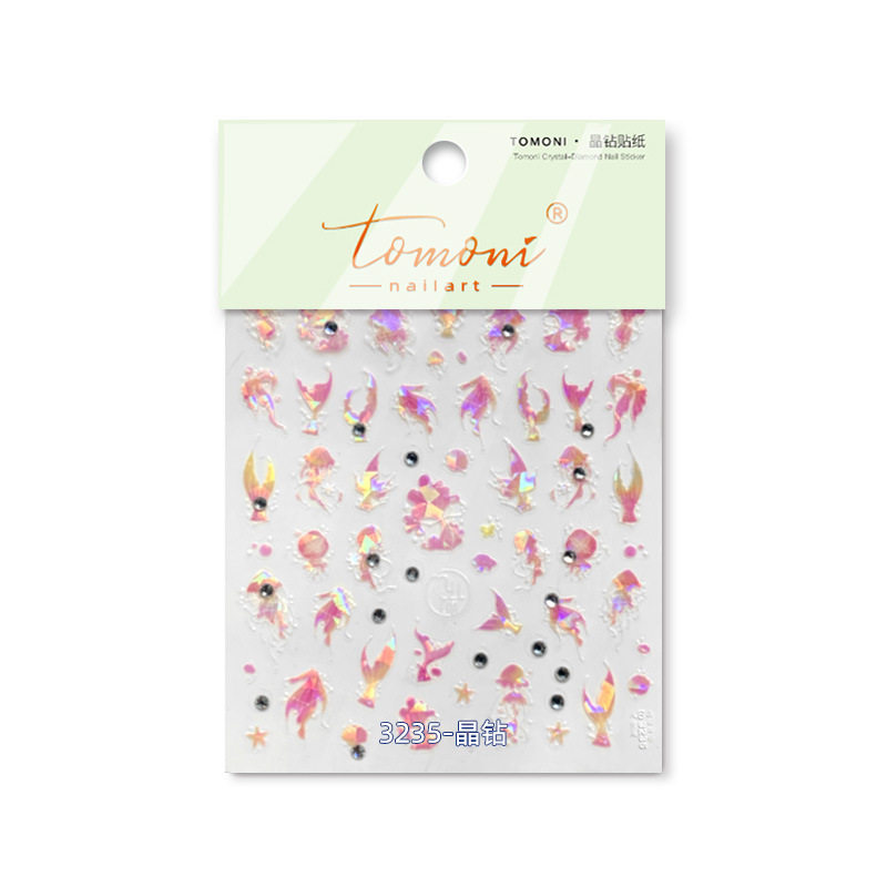 Tomoni 크리스탈 다이아몬드 네일 아트 스티커 폭발 일본 빈티지 네일 스티커 공장 도매 핑크 해파리 3235스토어 가기