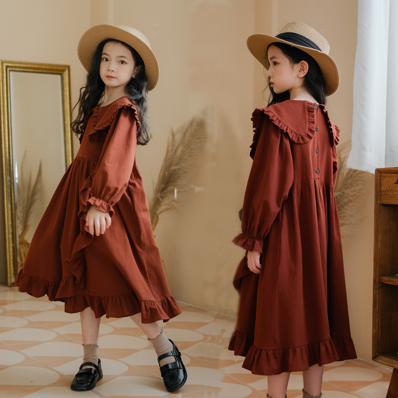 여자 원피스 2023 가을과 겨울 귀 인형 칼라 면 원피스 긴 소매 공주 원피스 불규칙한 긴 원피스