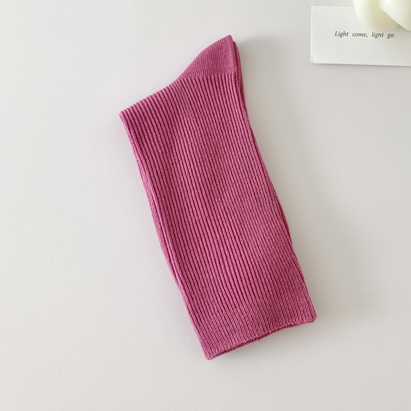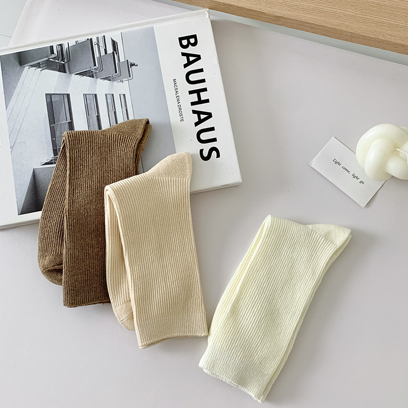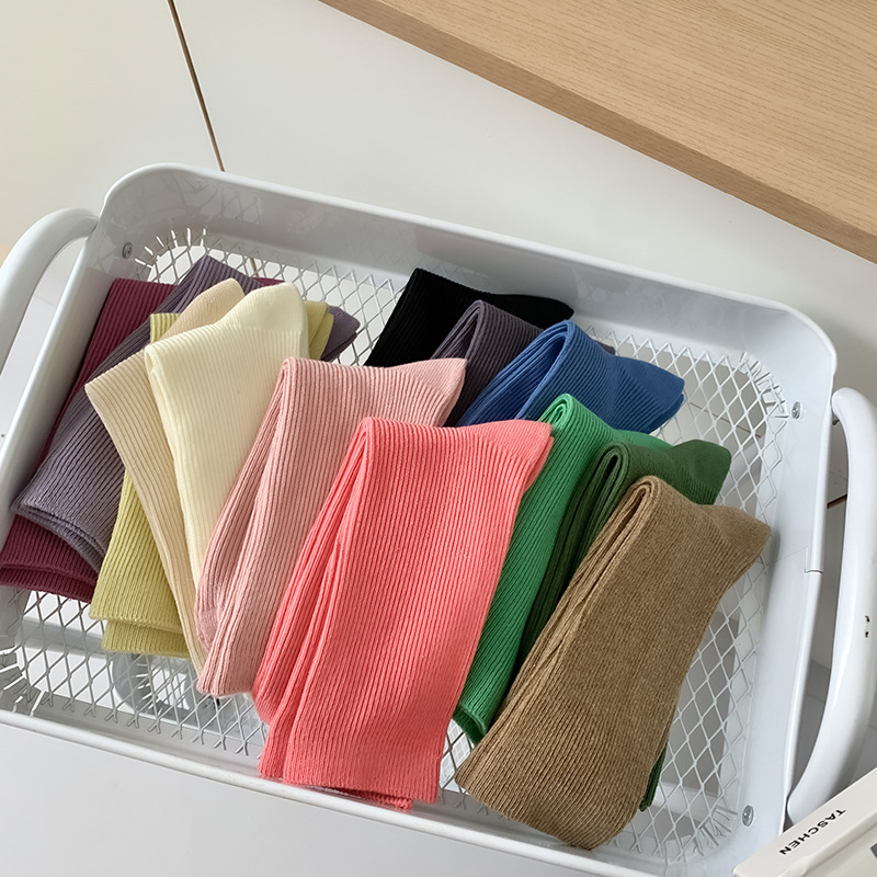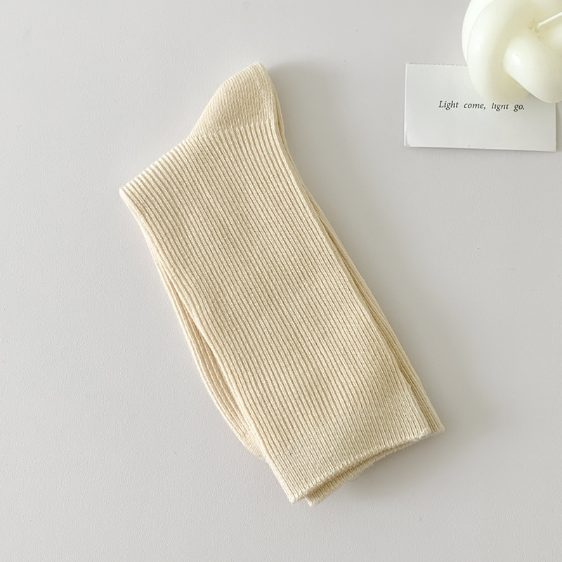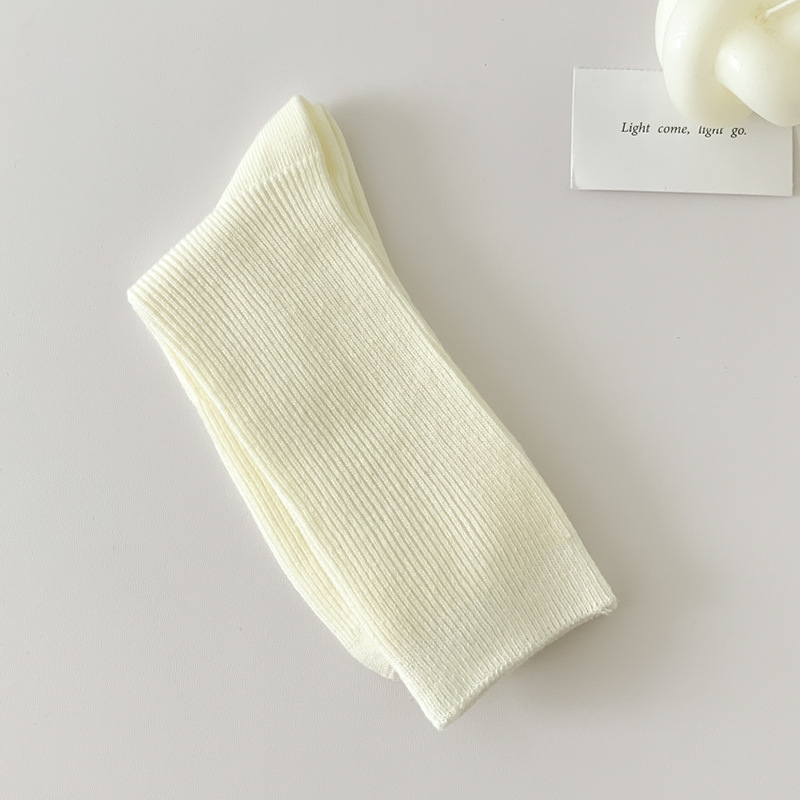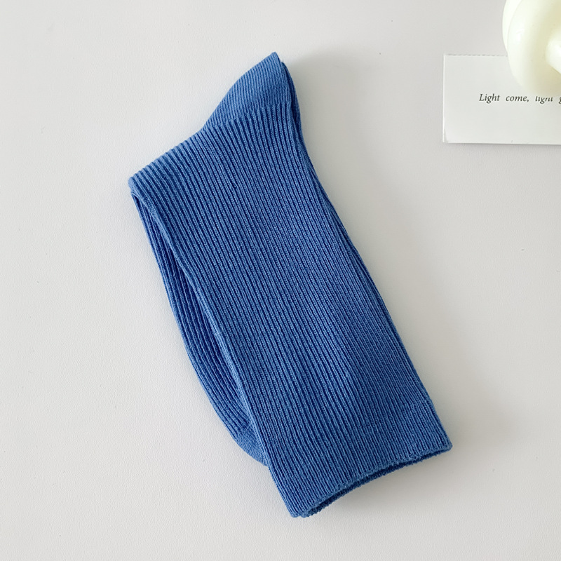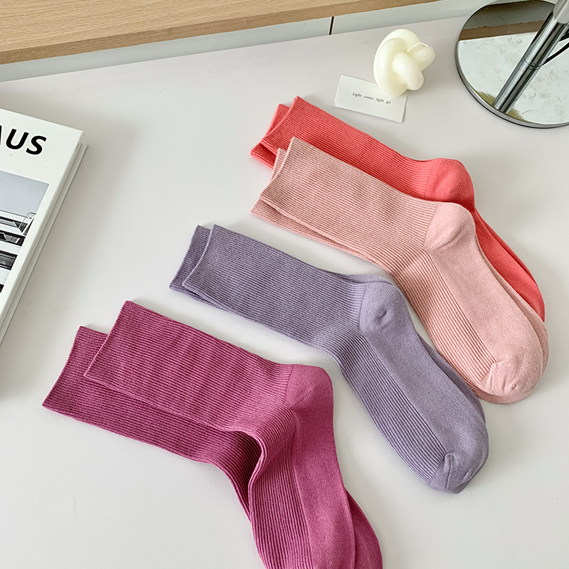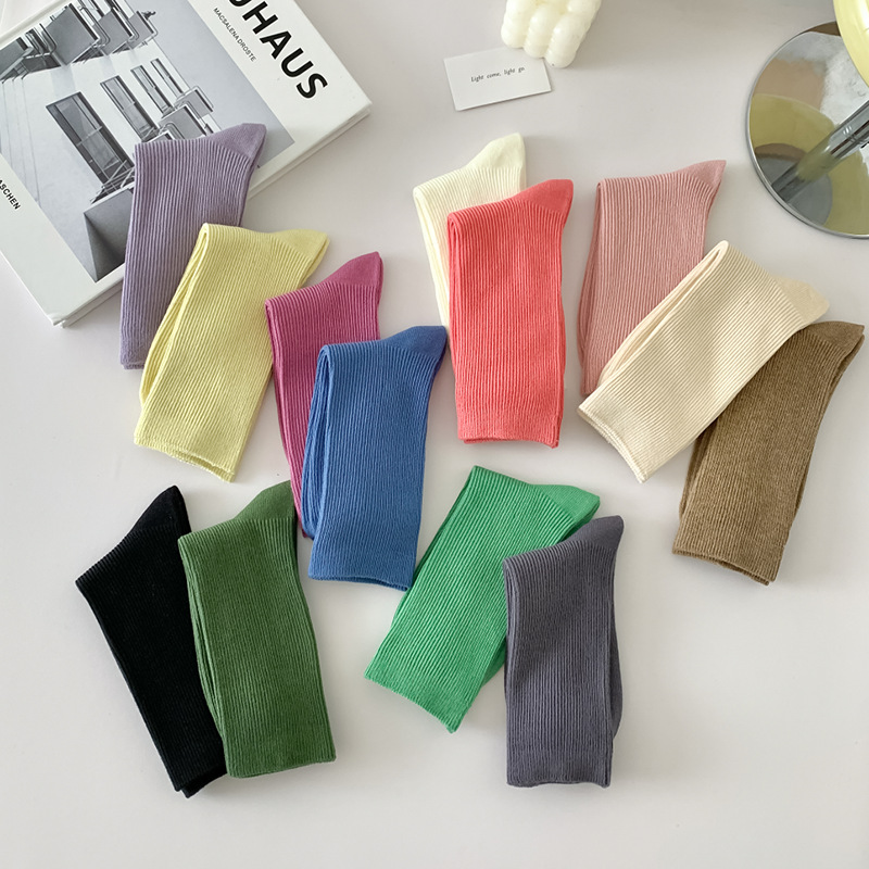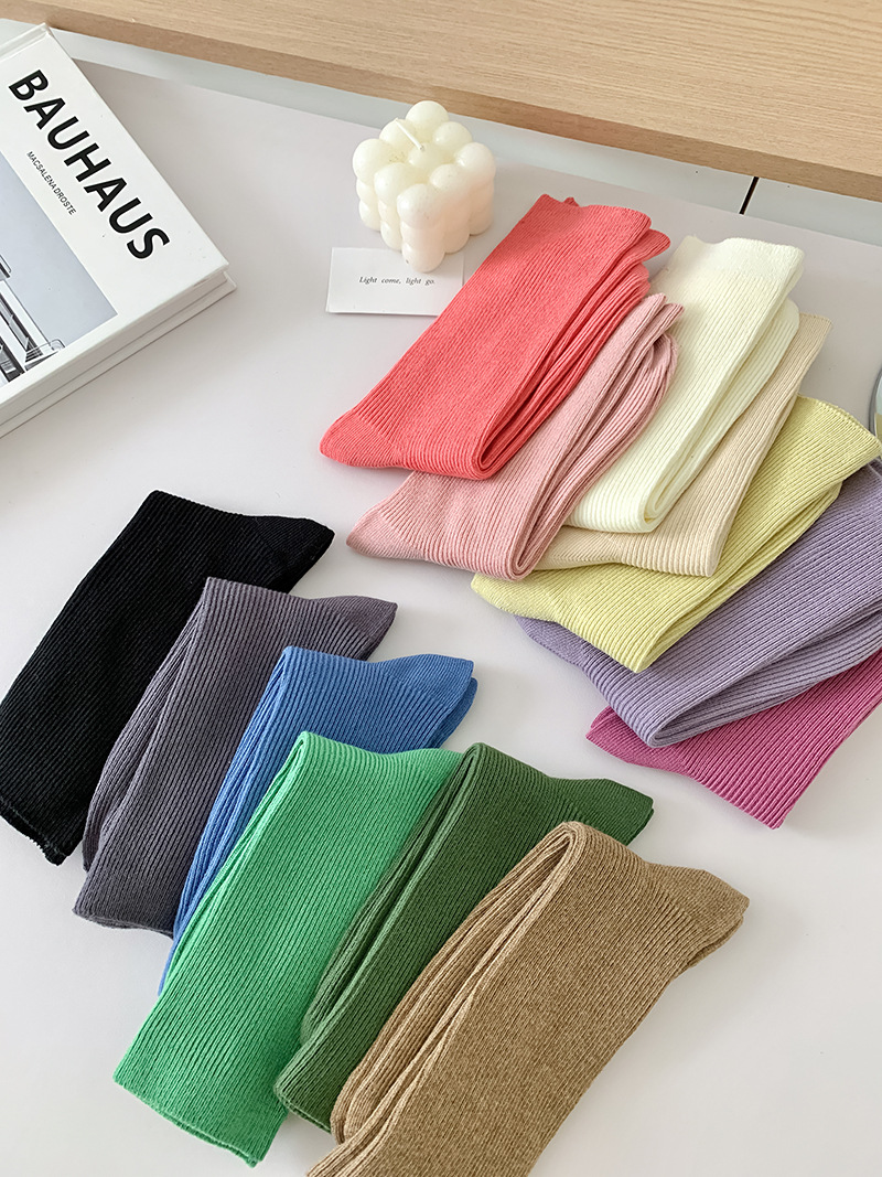 새로운 캔디 컬러 스택 양말 여성용 중간 길이 양말 세로 줄무늬 면 양말 한국 양말 스타일 더블 바늘 양말 여성용 양말