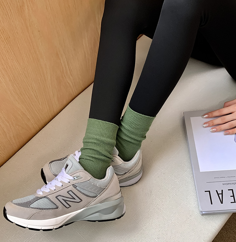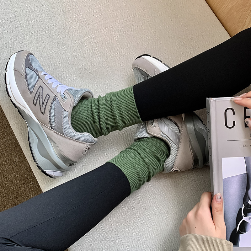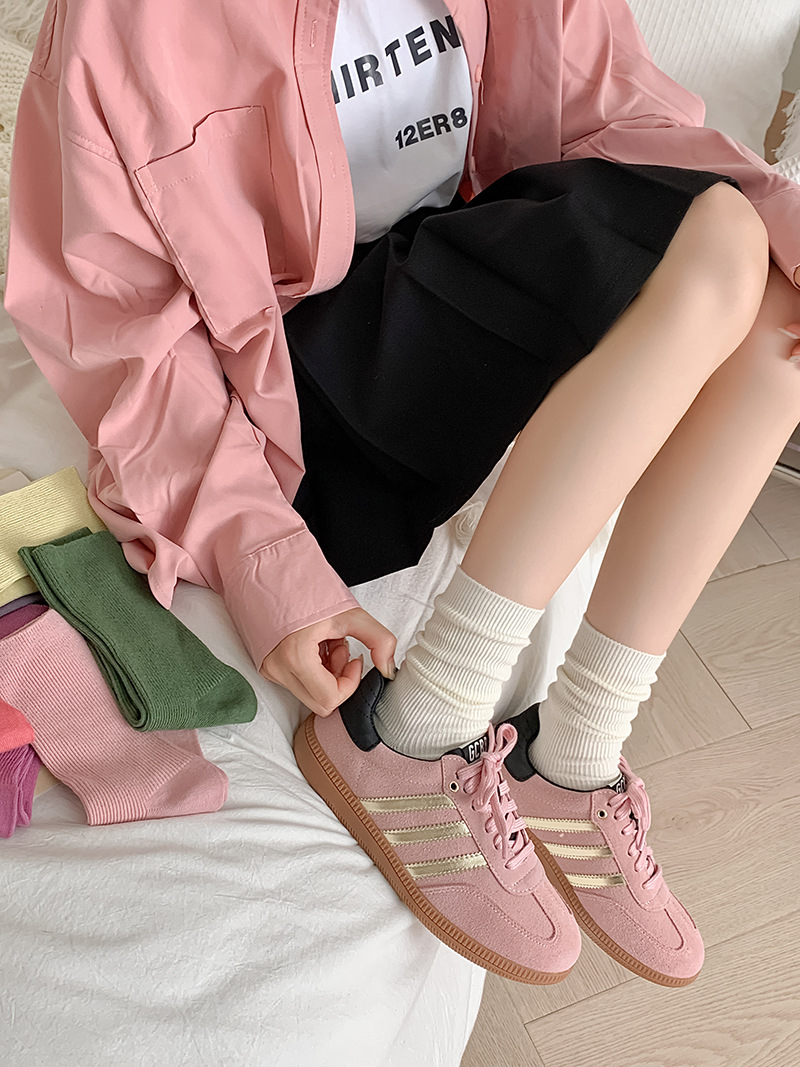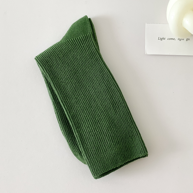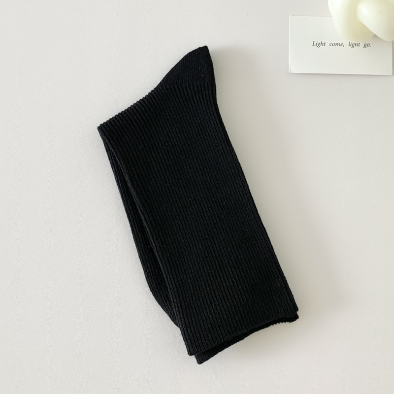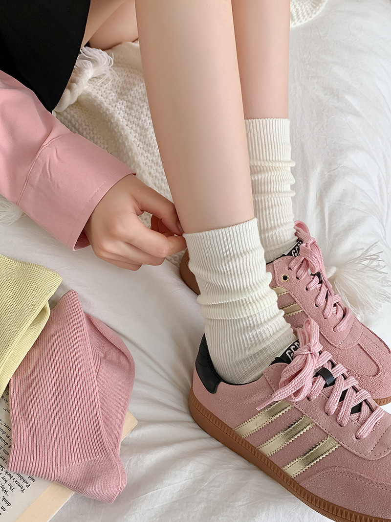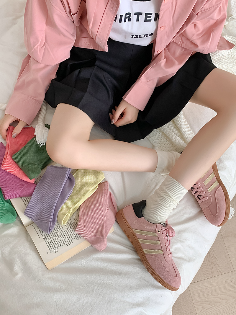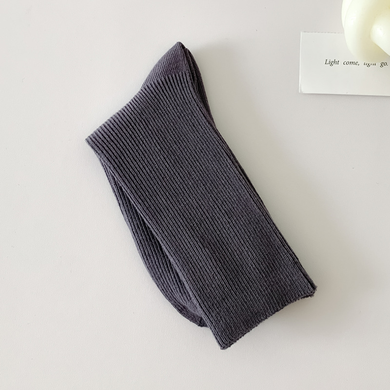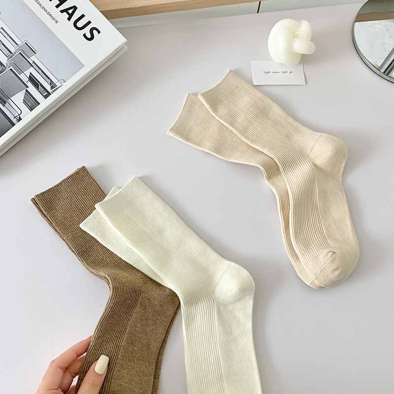 새로운 캔디 컬러 스택 양말 여성용 중간 길이 양말 세로 줄무늬 면 양말 한국 양말 스타일 더블 바늘 양말 여성용 양말